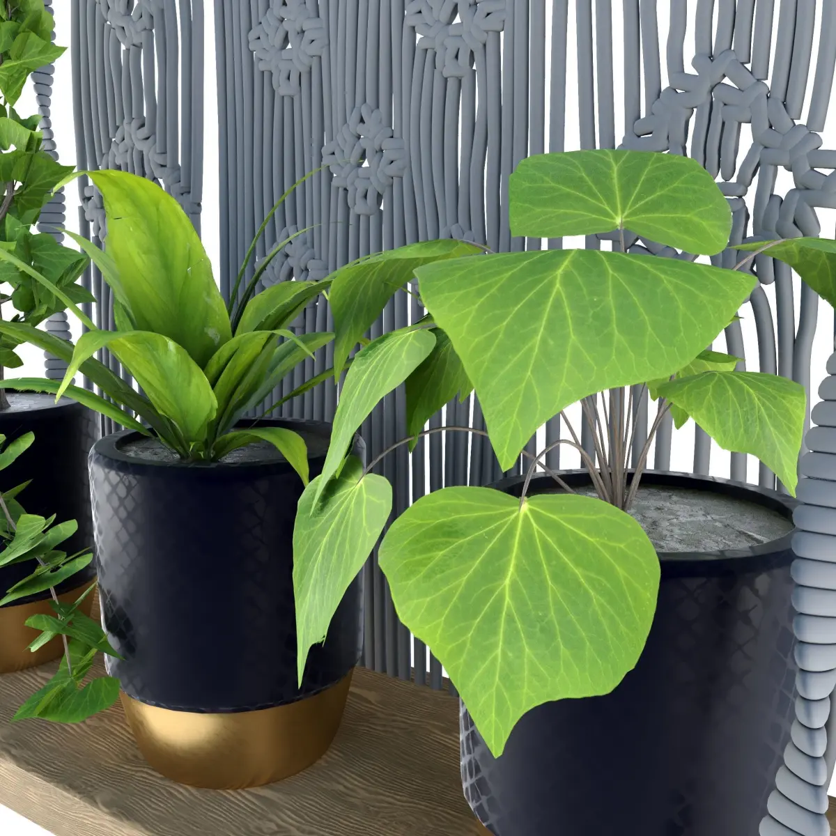 Name: Indoor Plants in rusty Concrete Pot with Macrame - Set 1Version: 2017Render: CoronaPreview: YesPolys: 936.326Verts: 941.407