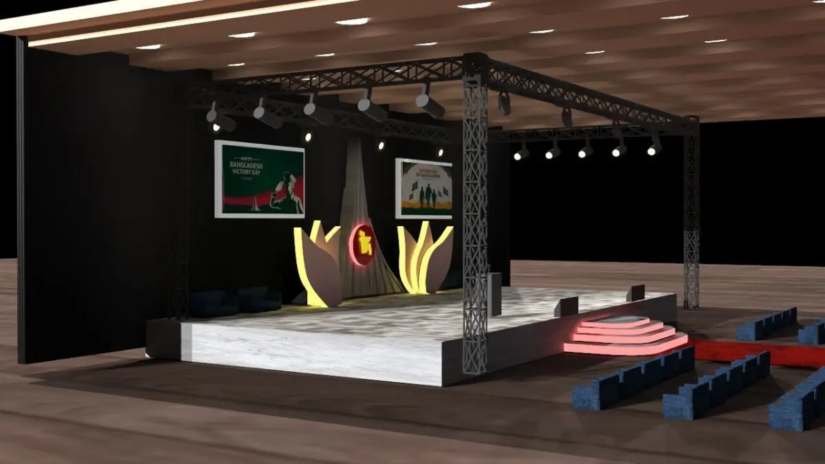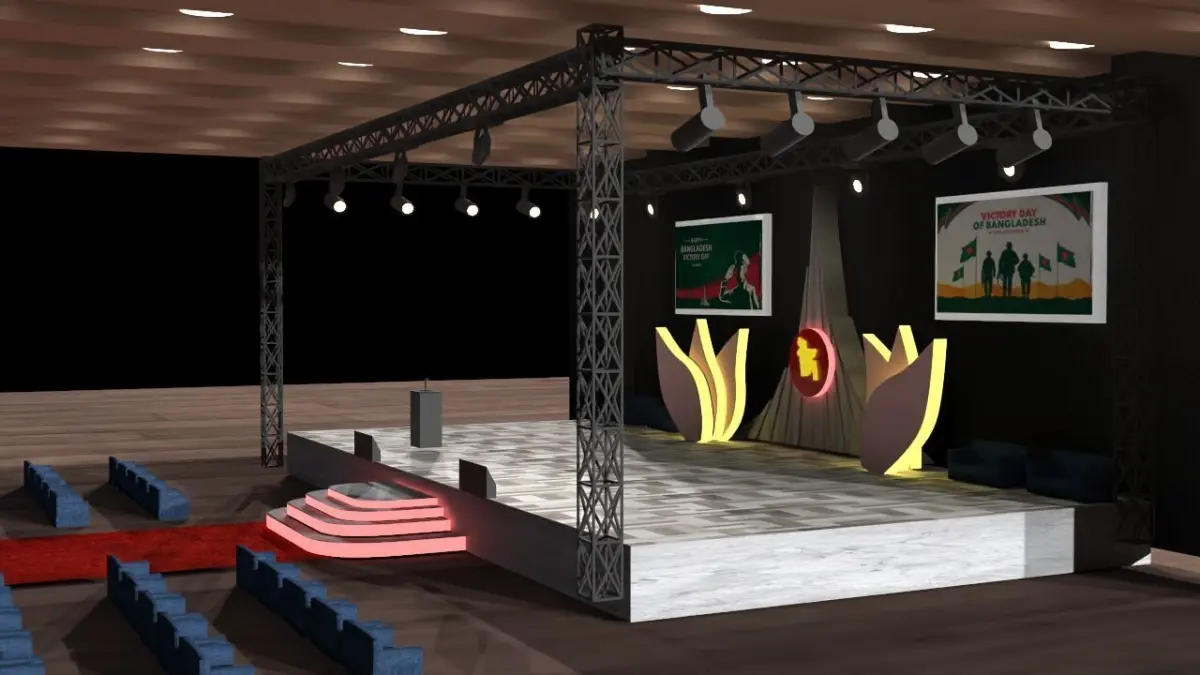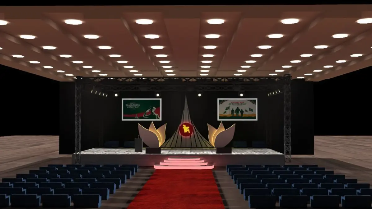 Celebrate the spirit of Bangladesh's Victory Day with this detailed indoor stage model, created in 3ds Max 2024 and rendered using Arnold Renderer. Designed to reflect the national pride and festive atmosphere of December 16, this model is perfect for event visualizations, animations, and interior scene renders that need a touch of cultural authenticity.This mid-poly asset features clean quad-based geometry, well-optimized for various creative workflows including product and event visualization, commercial renders, and cinematic sequences.