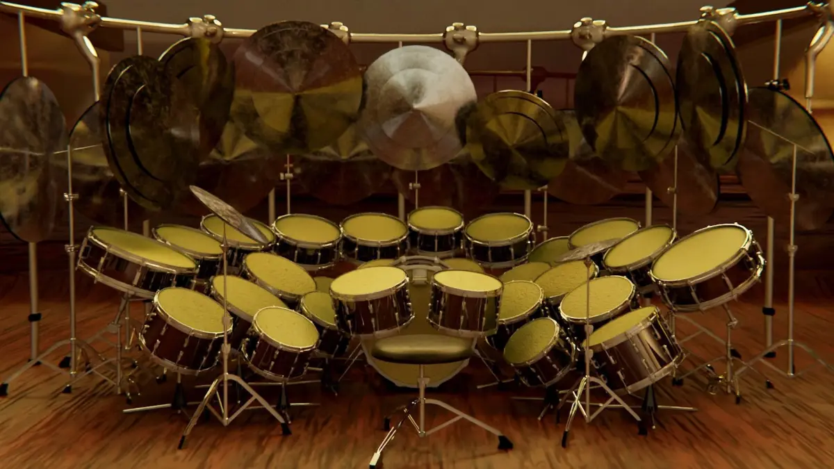 Textures for the backdrop and wooden parts of the drum are provided. They are 2K and include the color, normal and roughness for both. The materials for the drumskin and the metal are procedural and very easy to edit. The assets were made to scale, this is a big drumset.