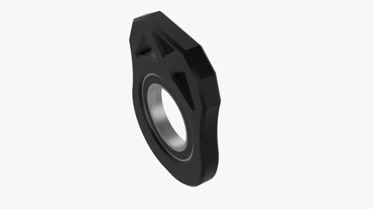 This high-precision 3D model represents an anodized aluminum bearing hub designed for mechanical assemblies requiring smooth rotational motion and structural stability. Ideal for robotics, automation rigs, or custom machinery, the component features an integrated bearing and a distinctive X-cut pattern for optimized weight distribution and visual appeal. Available in dual-tone finishes, it's perfect for realistic renders, engineering simulations, or prototyping workflows.