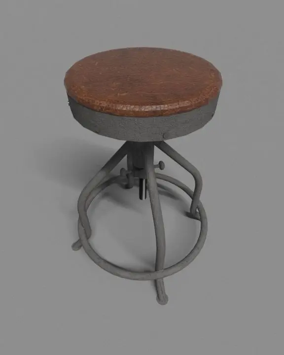 Spinning bar chair in industrial design with aging iron and leather seat.