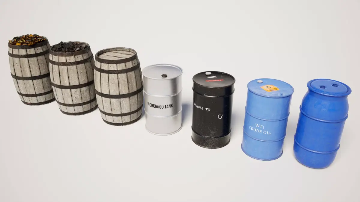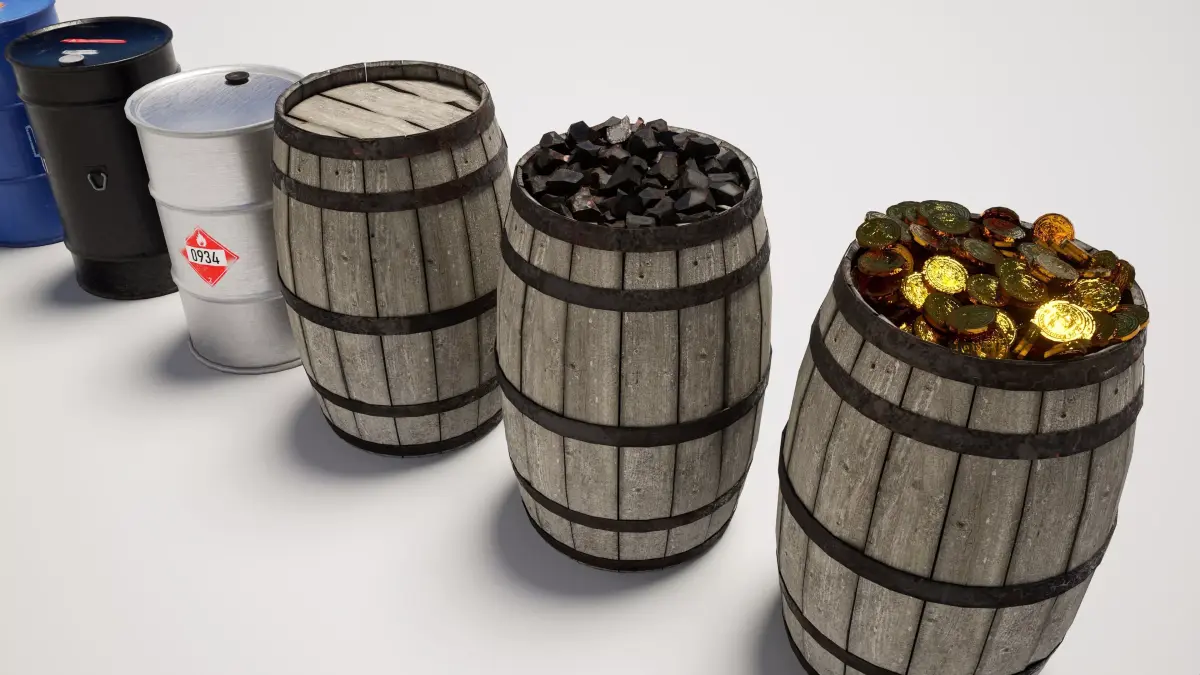 Detailed model pack of industrial barrel props