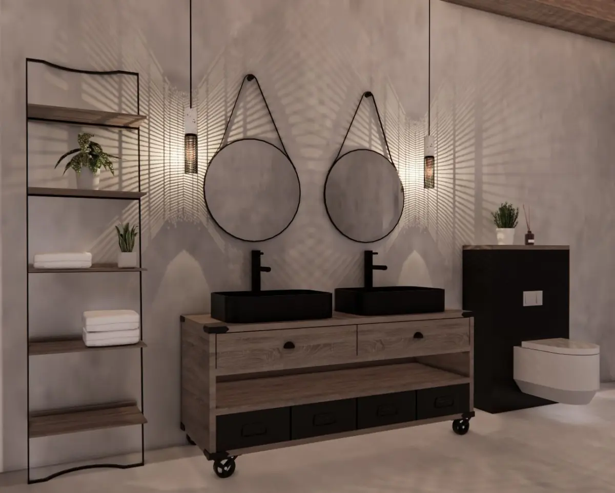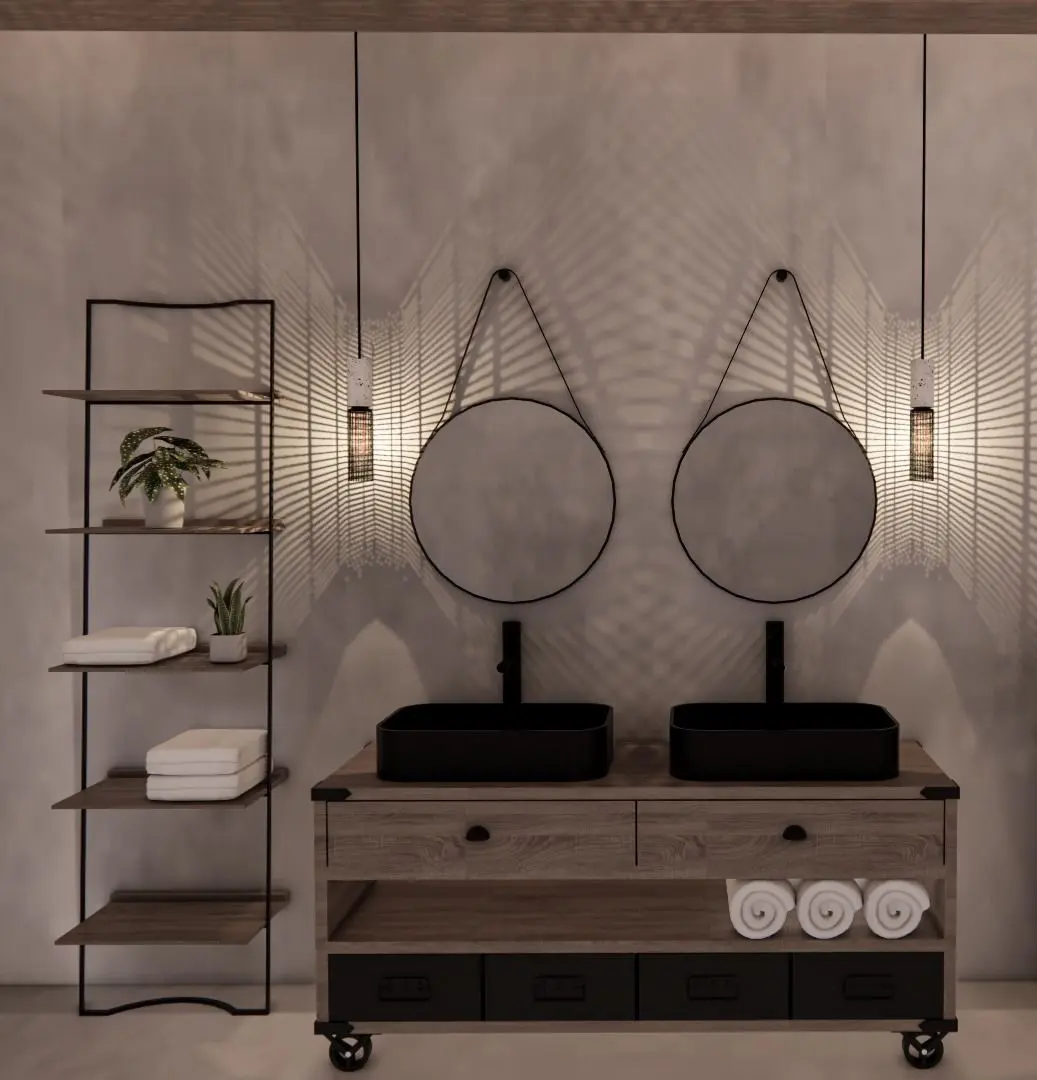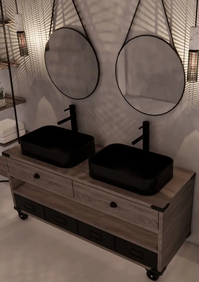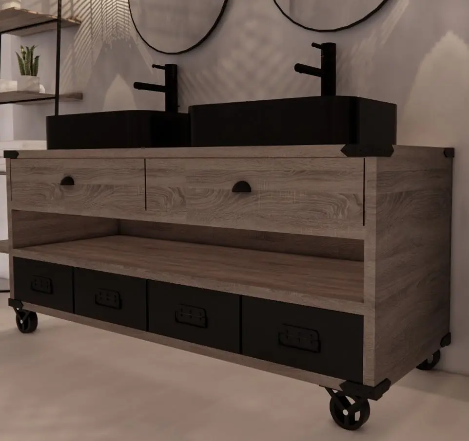 Tiferno industrial style bathroom with two sinks : L 160 - W 55 - H 200. ( Reference : https://en.tiferno.it/products/p895-industrial-style-bathroom-composition.php#contact_form )