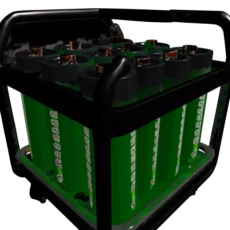 This highly detailed 3D model depicts an industrial battery storage and transport trolley, featuring a robust metal frame with caster wheels and a full set of large-format cylindrical batteries. Each battery is meticulously modeled with accurate proportions and visible terminals, while the trolley itself showcases realistic structural elements and attachment points. This asset is ideal for a variety of digital applications, including enriching industrial environments in game development, adding authentic detail to architectural visualization projects, or creating compelling scenes in digital art. Its clean topology and optimized mesh make it suitable for real-time applications such as AR/VR experiences, as well as high-quality static renderings and animations. The model is fully UV unwrapped, allowing for easy application of custom textures. It is provided with PBR textures, ensuring photorealistic rendering across different lighting conditions. Compatible with leading 3D software, this model can be supplied in multiple popular formats including GLB, OBJ, STL, ABC, DAE, FBX, USD, and PLY, offering broad usability for your creative needs. Whether populating a factory floor, a futuristic power plant, or an urban setting, this battery trolley adds a layer of realism and functionality to any scene. The design emphasizes durability and practical utility, making it a valuable addition to any professional 3D asset library.