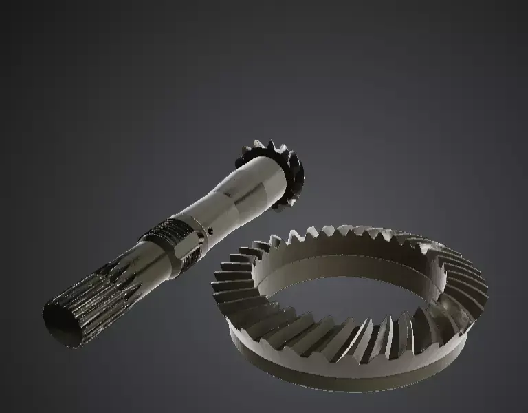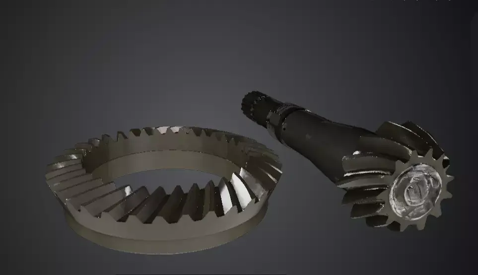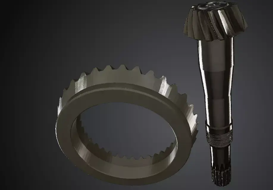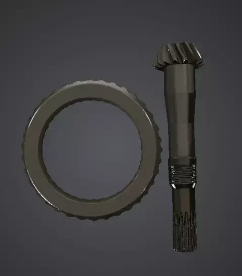 Product OverviewThis listing features a professional-grade, high-fidelity 3D assembly of a heavy-duty spiral bevel drive pinion and its corresponding ring gear. Designed for high-end engineering visualizations, automotive renders, and industrial animations, this set captures the complex curvature and interlocking geometry required for realistic power transmission scenes.Component DetailsThe assembly consists of two primary parts: a precision-toothed bevel pinion shaft and a large-diameter spiral ring gear. The pinion shaft includes intricate detailing such as a machined body, splined base, and threaded sections, while the ring gear is modeled with accurate tooth profiles to ensure a perfect mechanical fit. Both parts exhibit realistic surface textures and machined weathering visible in the preview renders.Technical Fidelity and GeometryThis is an ultra-high-density hero asset optimized for close-up shots where surface quality is paramount. The model utilizes a triangle-based polygon mesh with nearly 1 million faces ($952,784$) and over $492,000$ vertices, providing exceptionally smooth curves without the need for additional subdivision. This density also makes the mesh a prime candidate for high-resolution 3D printing and physical prototyping.Texturing and UV SpecificationsThe model is prepared with non-overlapping unwrapped UVs, making it fully compatible with PBR (Physically Based Rendering) workflows. The included textures showcase a sophisticated metallic grain and realistic surface imperfections, allowing the asset to react naturally to various lighting environments. Whether you are using Octane, Redshift, or standard game engine shaders, this asset is ready to be dropped into your scene with minimal setup.Technical Specifications SummaryGeometry Type: Polygon MeshTopology: 100% TrianglePolygon Count: 952,784 FacesVertex Count: 492,241 VerticesUV Mapping: Yes, Non-overlapping