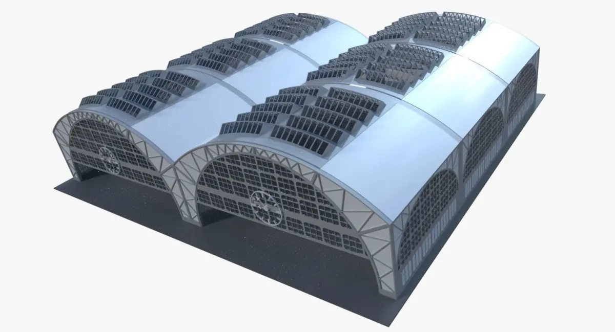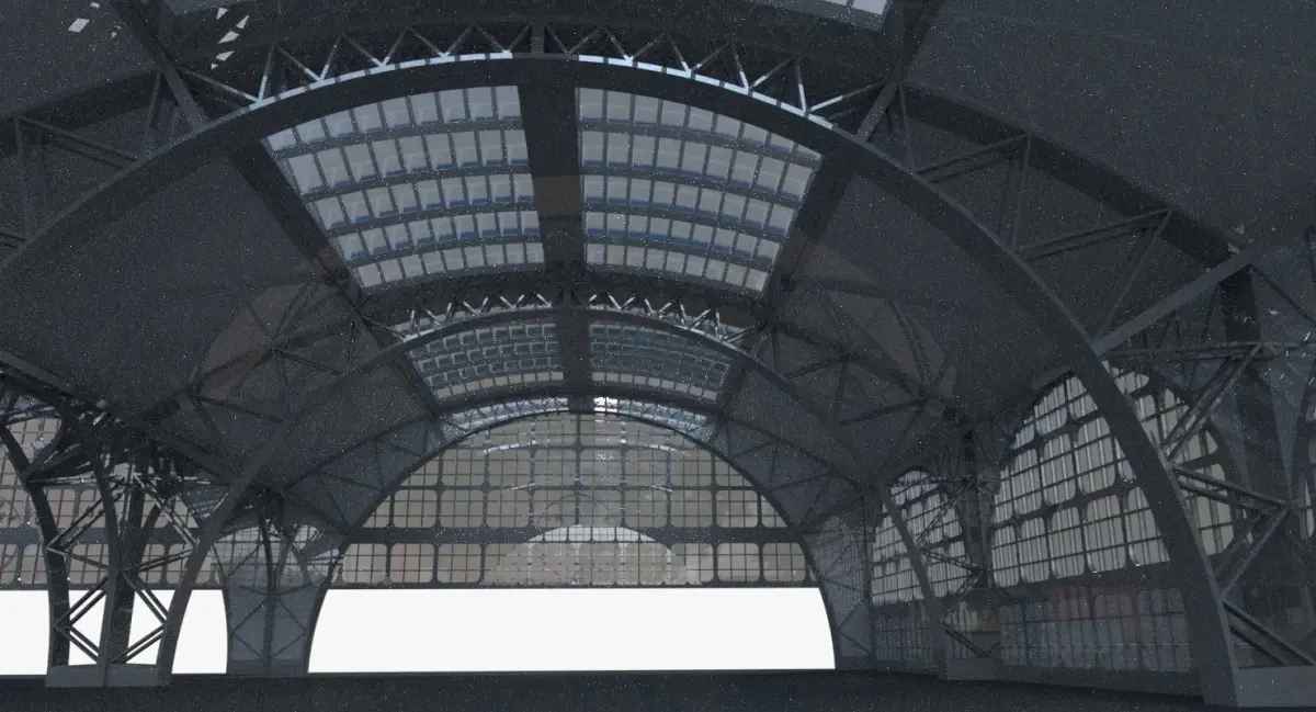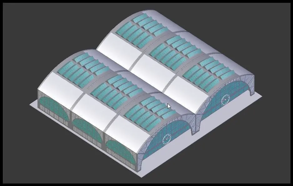 This is model of industrial building. It can be considered as warehouse, railway station roofing etc.Model is suitable for both exterior and interior renders. Model is not ready for subdivision.