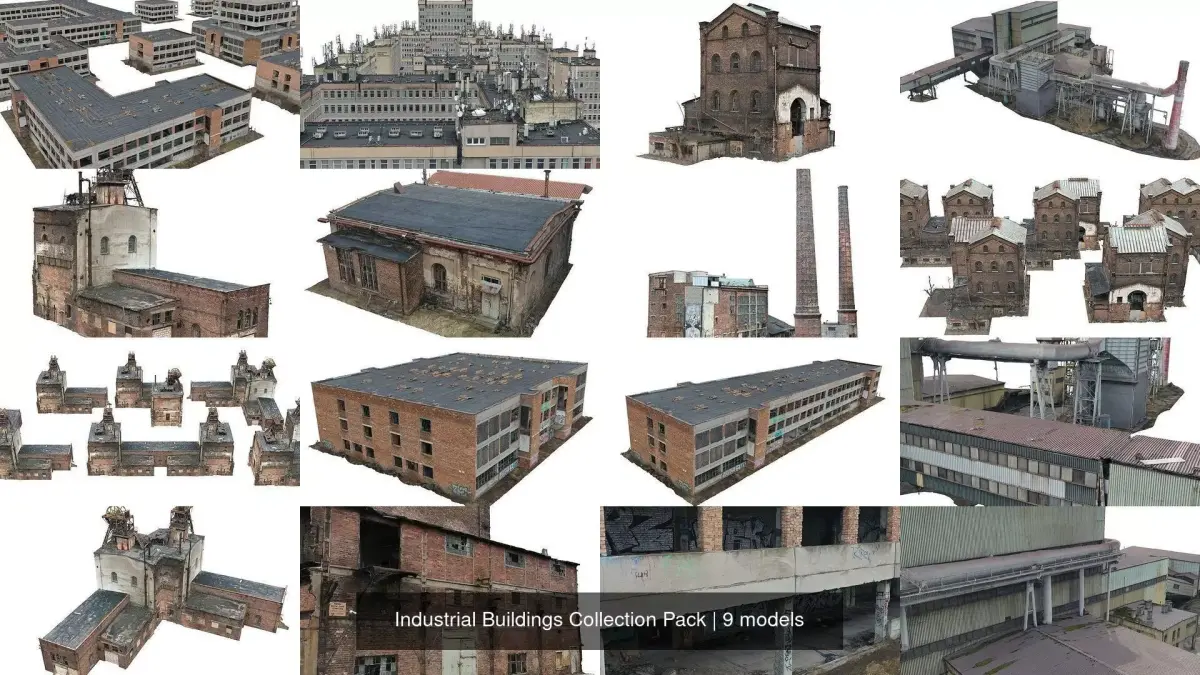 Why Our Models Are ExceptionalHigh-Quality Scans: Each model has been meticulously scanned to ensure maximum accuracy and realistic representation of reality.Architectural Details: From the smallest details on facades to complex internal structures – nothing escapes our attention.Optimized for Games, Video, and VR: Models are optimized for performance, allowing for smooth use in games, professional video productions, and immersive virtual reality experiences.Ready to Use: Our models are delivered in popular file formats, ready for immediate use in your favorite software.Application in Environmental RealismVideo Games: Create unforgettable worlds that will captivate players with their realism and attention to detail.Video Productions: Elevate the quality of your films and animations by adding authentic industrial landscapes.Simulations and Training: Use our models to create realistic simulations and training sessions that provide participants with genuine experiences.Virtual Reality (VR): Immerse yourself in full realism with our models, perfect for VR environments where every detail counts. Experience the future of interactive and immersive environments with our high-fidelity 3D scans.Why Choose Us?Experience and Trust: Our company has years of experience in creating high-quality 3D models, making us a leader in the industry.Innovative Solutions: We are constantly seeking new ways to improve our products to always deliver the best solutions.Fast and Friendly Customer Service: Our customer service is always ready to help and answer all your questions.Don't wait any longer! Order our 3D scanned industrial building models today and see how they can elevate your project to a new level.