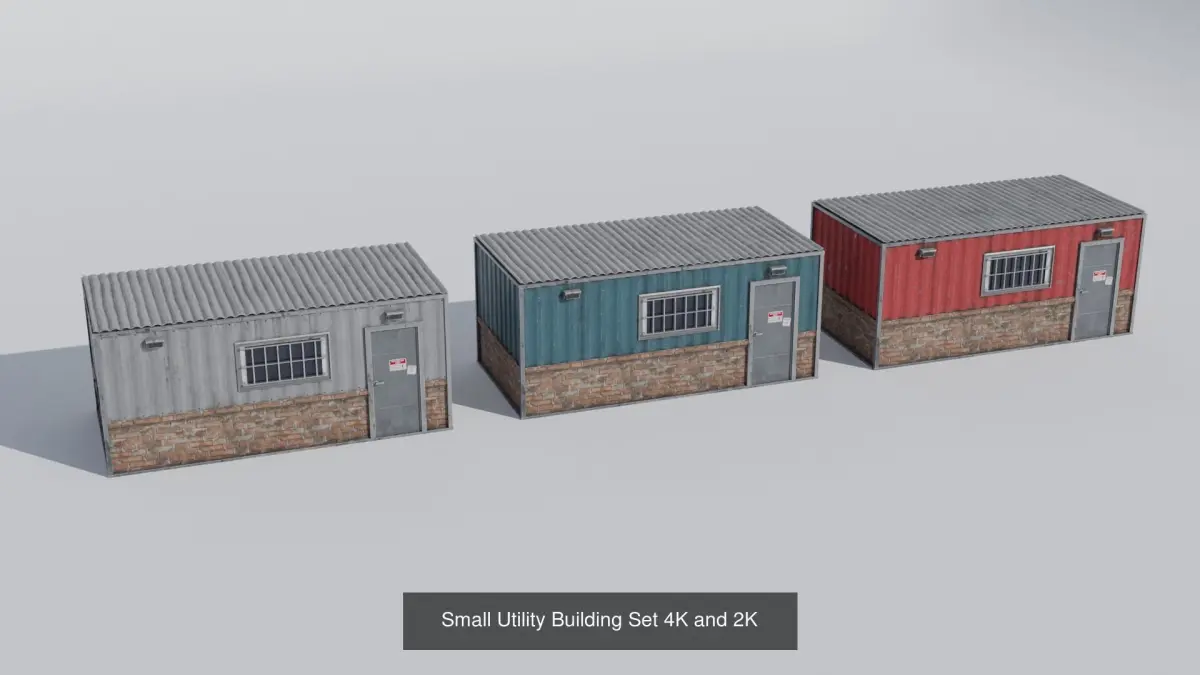 This Industrial Builidng pack is perfect for adding ectra buildings to any industrial, commercial, or military facility. A few example include sprucing up a warehouse lot, adding these to the surroundings of a large factory, or putting them in place on a large military base. The options are limitless. These Buildings can also eaily be recolored with a hue stauration node inside your 3D Software.