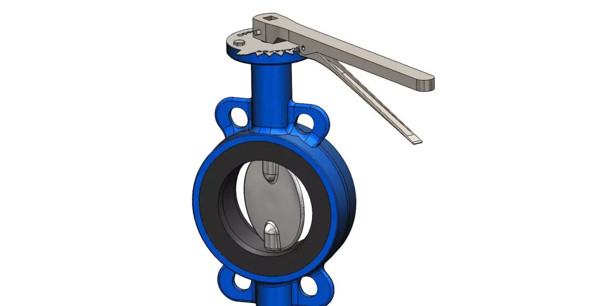 This is a high-quality 3D model of an industrial butterfly valve designed for fluid flow control applications. The model includes a detailed valve body, internal disc, shaft, and lever-operated handle mechanism. It is suitable for use in HVAC systems, water supply lines, fire protection systems, and general industrial piping layouts.The model is accurately created in SolidWorks with clean geometry and proper proportions, making it ideal for mechanical design projects, product visualization, engineering presentations, and CAD assemblies.