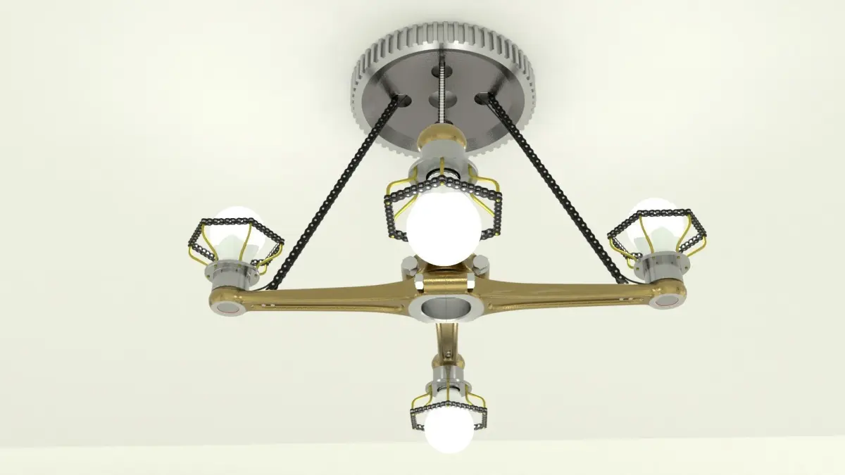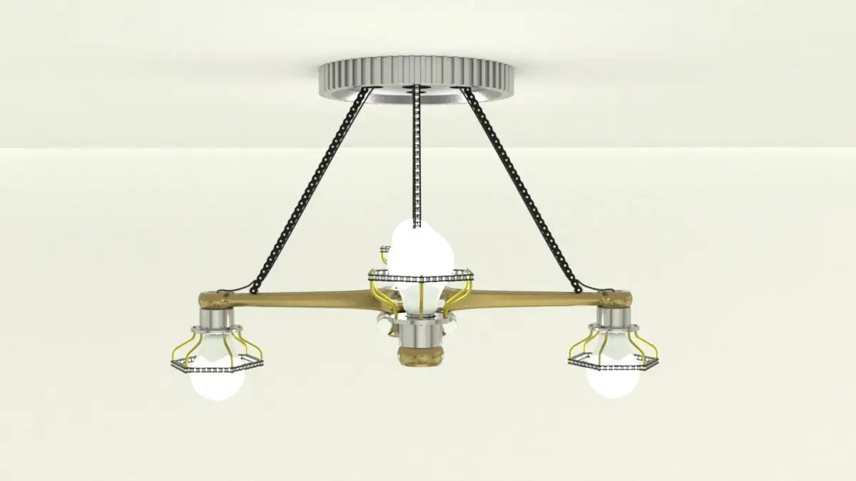 Pendant lamp, Blender 2.91PBR materials.Subdivision Surface Modifier,split edge.Basic mechanical and installation elements used to build the lamp. Light bulb emission node.