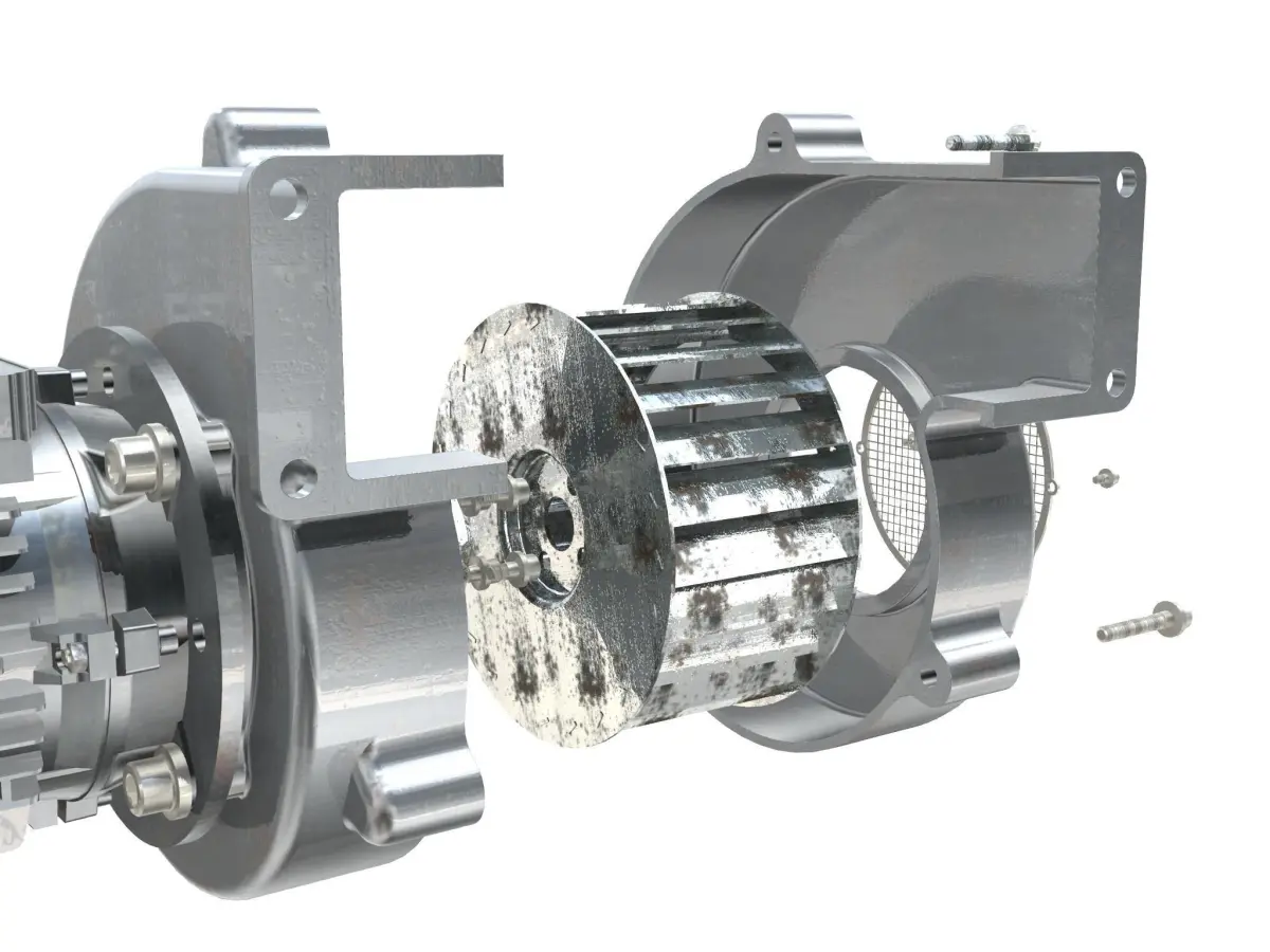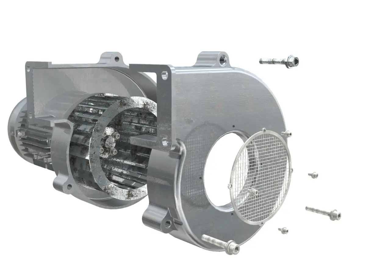 Highly detailed and animated industrial blower fan. The fan is animated with a spinning movement (animation available only in the max, fbx, and shade files, as they support animation).