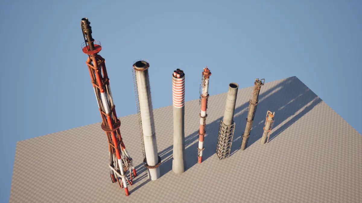 Here is a a pack of detailed industrial chimneys. 7 unique meshes with 4K textures.