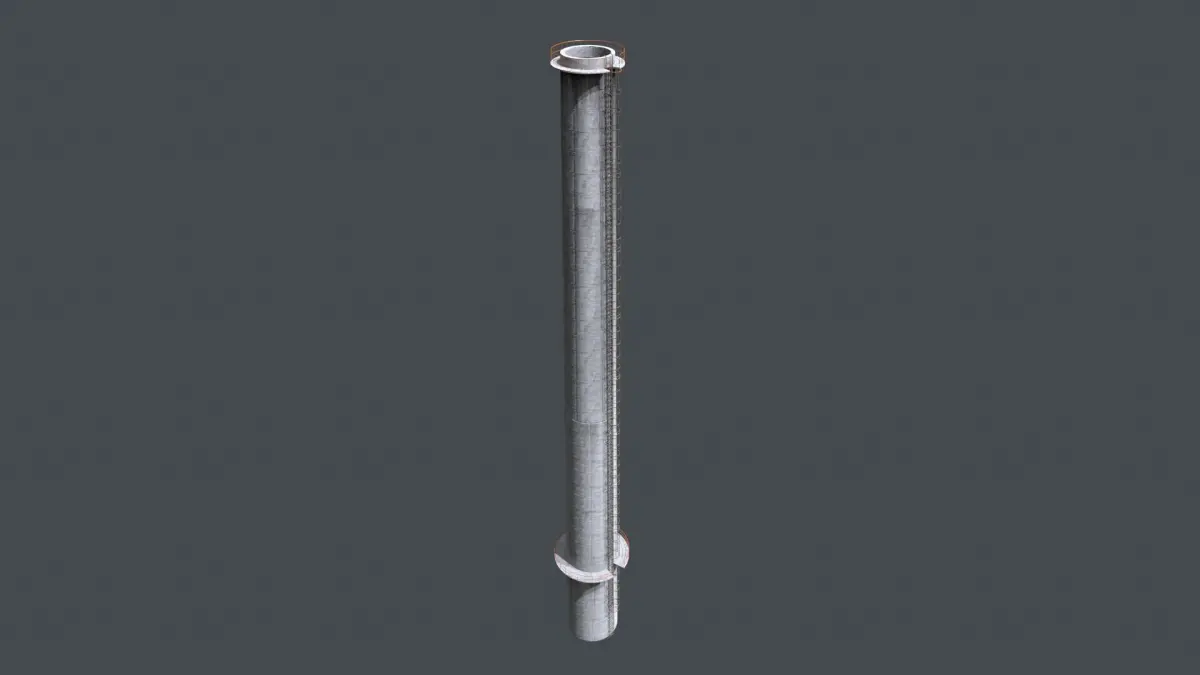 A highly detailed and realistic industrial chimney (smokestack) model, ideal for game environments, simulations, and industrial visualization. This asset includes weathered concrete textures, vertical access ladders, and safety railings.