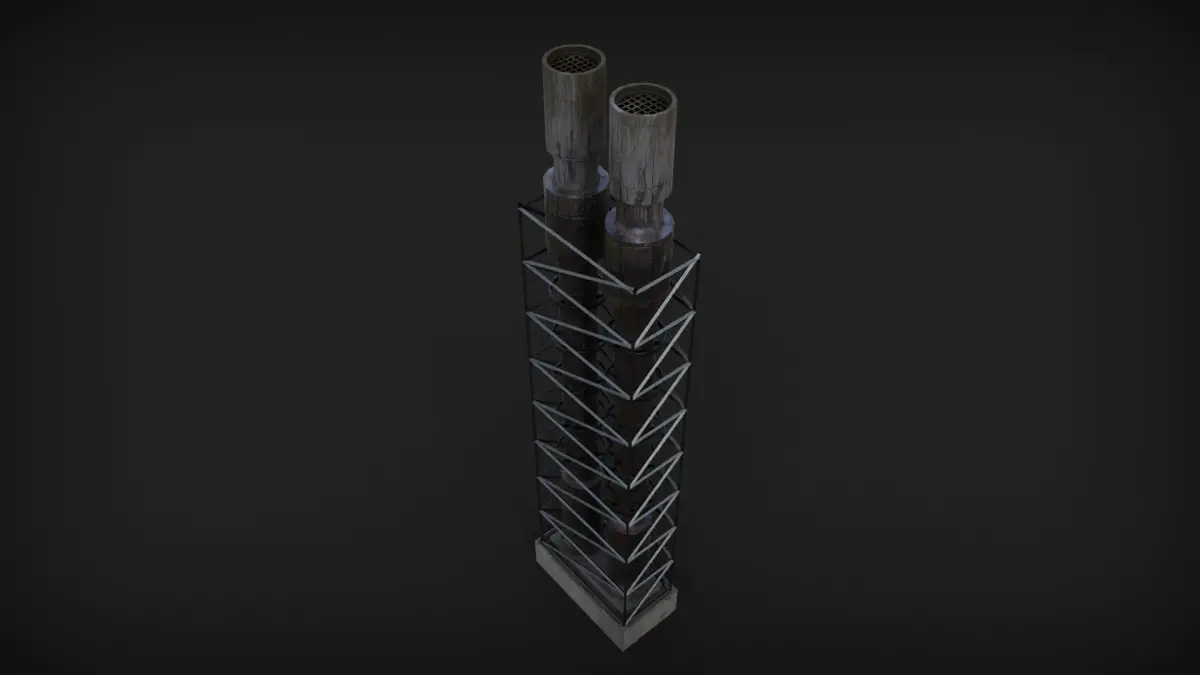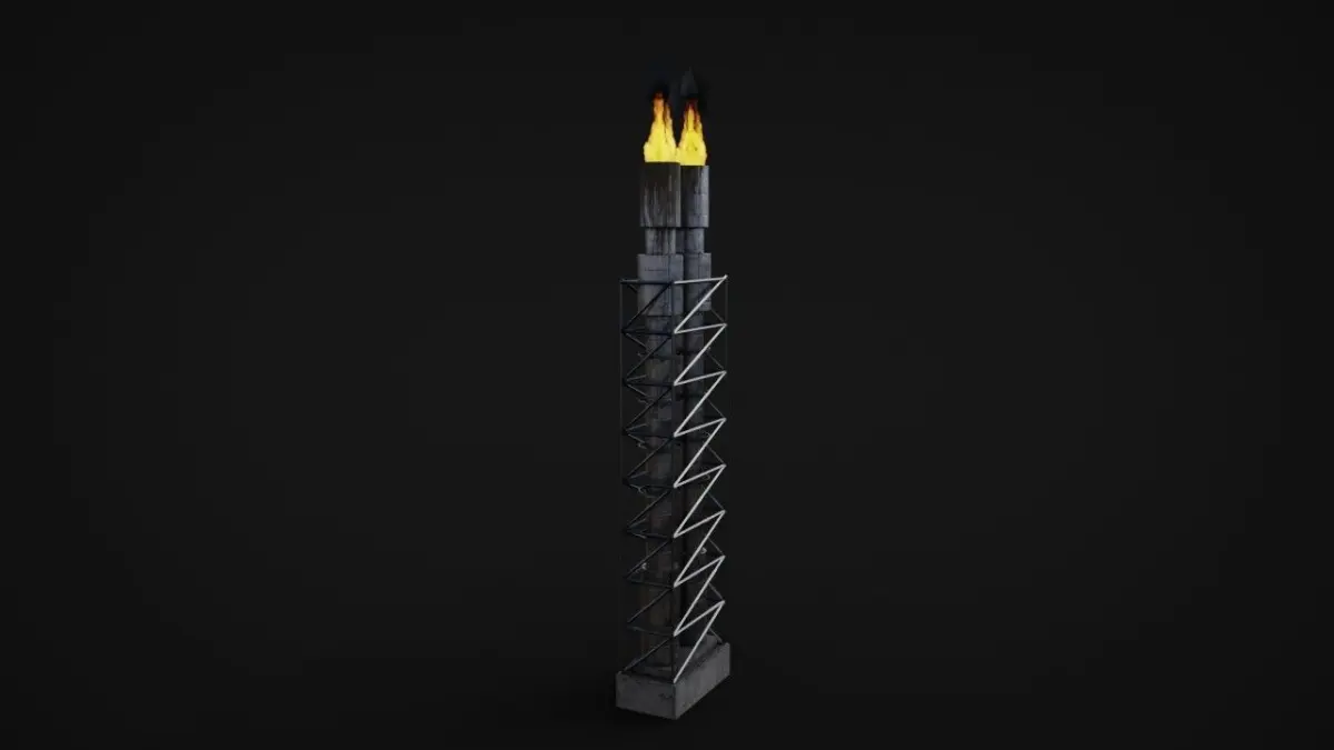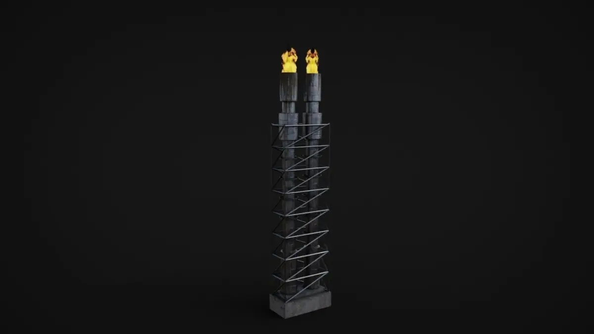 model includes an industrial chimmey with real time fire simulation ready to be used in game enginesIdeal for video games since its low poly just about 1.7k faces and works well in realtime engines tested in evee and unity HDRP can also be used as a scene filler and background object for vfx shots and filmss clean quad topologyuv mapped with 4k texturesclean topology