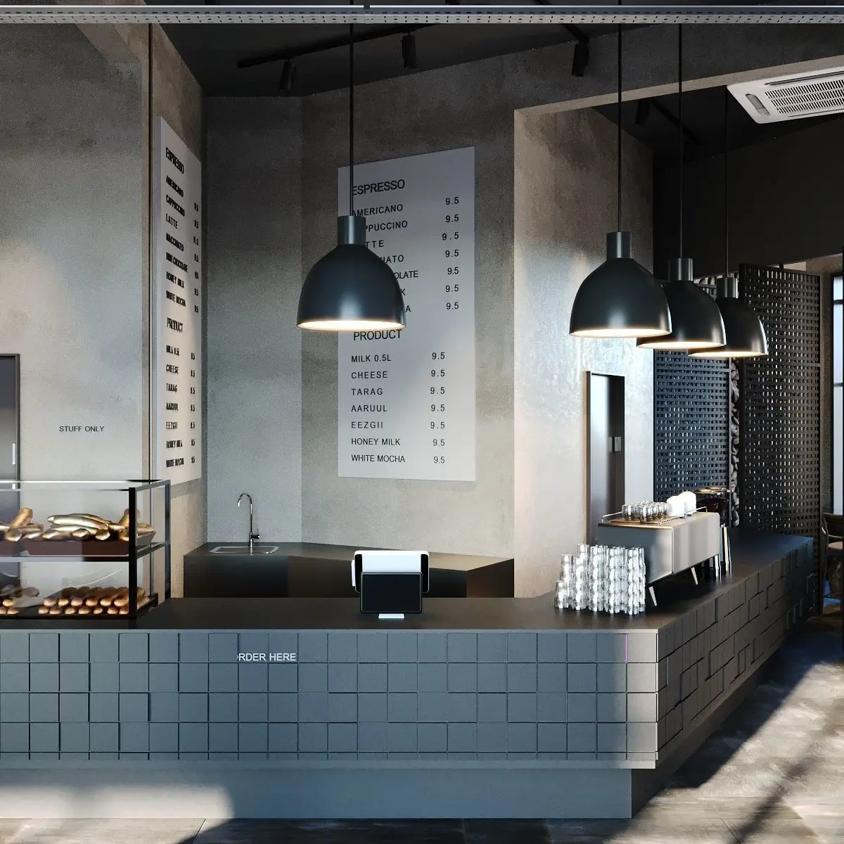 Lounge Bar Area: Elevate the dining experience with a dedicated lounge bar area featuring a stylish counter, comfortable seating, and ambient lighting. Whether it's craft cocktails, fine wines, or artisanal spirits, our scene provides the perfect setting for patrons to unwind and socialize in style.