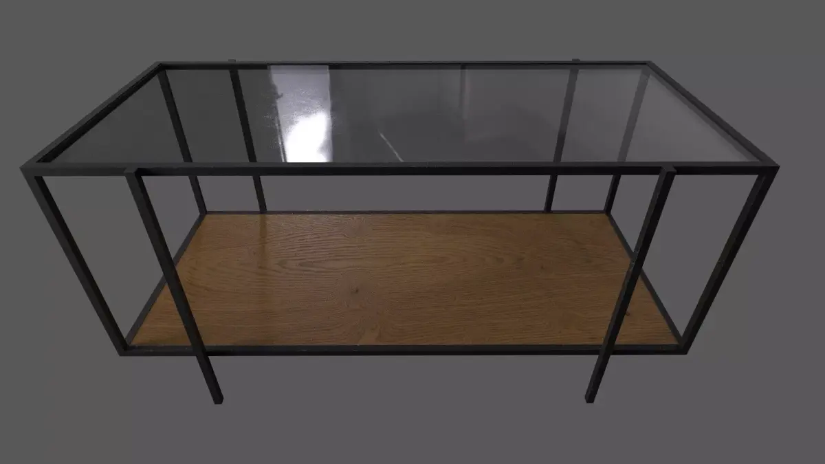 Low-poly industrial coffee table mesh with clean topology and 4096×4096 PBR textures. FBX + OBJ formats.