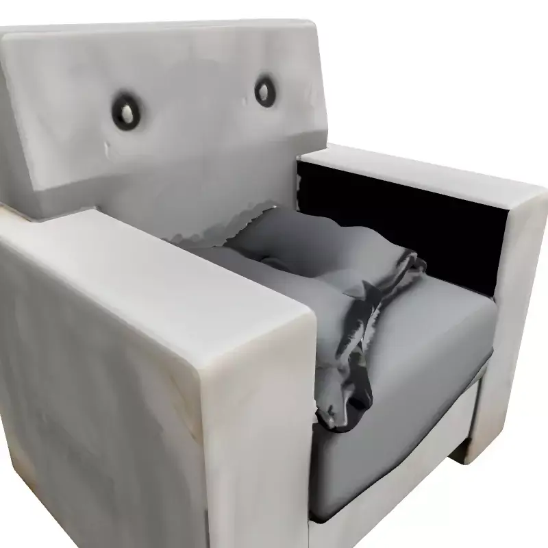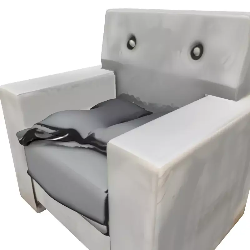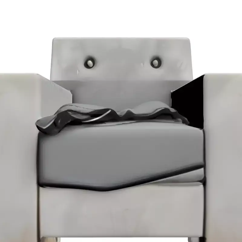 This highly detailed 3D model presents a modern industrial armchair, perfect for enhancing contemporary architectural visualizations and interior design projects. The armchair features a robust, rectangular frame crafted with a realistic concrete texture, showcasing subtle wear and weathering that adds character and authenticity. Complementing the stark frame are plush, dark grey fabric cushions for the seat and backrest, providing a striking contrast in material and texture. A light grey, tufted accent cushion adds an extra layer of comfort and style. This model is ideal for creating photorealistic renders of lofts, minimalist apartments, public spaces, or any scene requiring a sophisticated industrial aesthetic. It is also well-suited for high-fidelity virtual staging, digital art, and non-interactive AR/VR environments where visual fidelity is paramount. The asset comes with clean, optimized topology, ensuring smooth subdivision, and is fully UV unwrapped with high-resolution PBR textures to deliver accurate material representation. Supported file formats include GLB, OBJ, FBX, USD, and DAE, offering broad compatibility across various 3D software and game engines, though primarily optimized for static rendering and detailed scene composition rather than real-time interactive applications without further optimization.