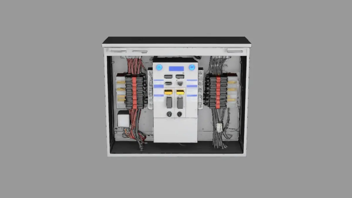 - 1 modular breaker box with labeled switches, LED indicators, and openable front panel