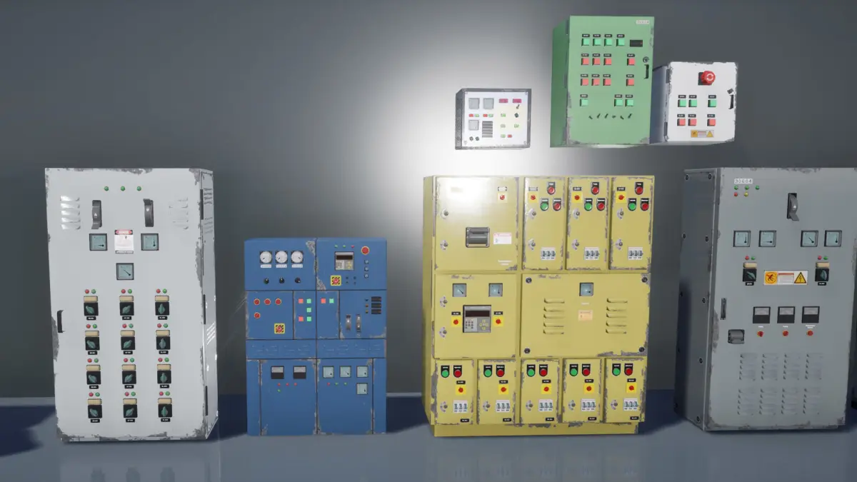 This is a collection of industrial control panels.