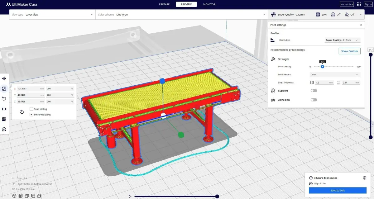 A 3D-printed industrial conveyor is a cutting-edge material handling system that utilizes additive manufacturing to produce its components with high precision and customization. This technology allows for the creation of conveyor parts, such as belts, rollers, and frames, with intricate designs and optimized geometries that enhance efficiency and performance. By leveraging 3D printing, manufacturers can design and produce components that are tailored to specific operational requirements, improving load distribution and reducing maintenance needs. Constructed from durable, wear-resistant materials like advanced polymers or metal alloys, 3D-printed industrial conveyors offer a cost-effective and flexible solution for various applications, including manufacturing, packaging, and logistics, streamlining material movement and contributing to overall process optimization