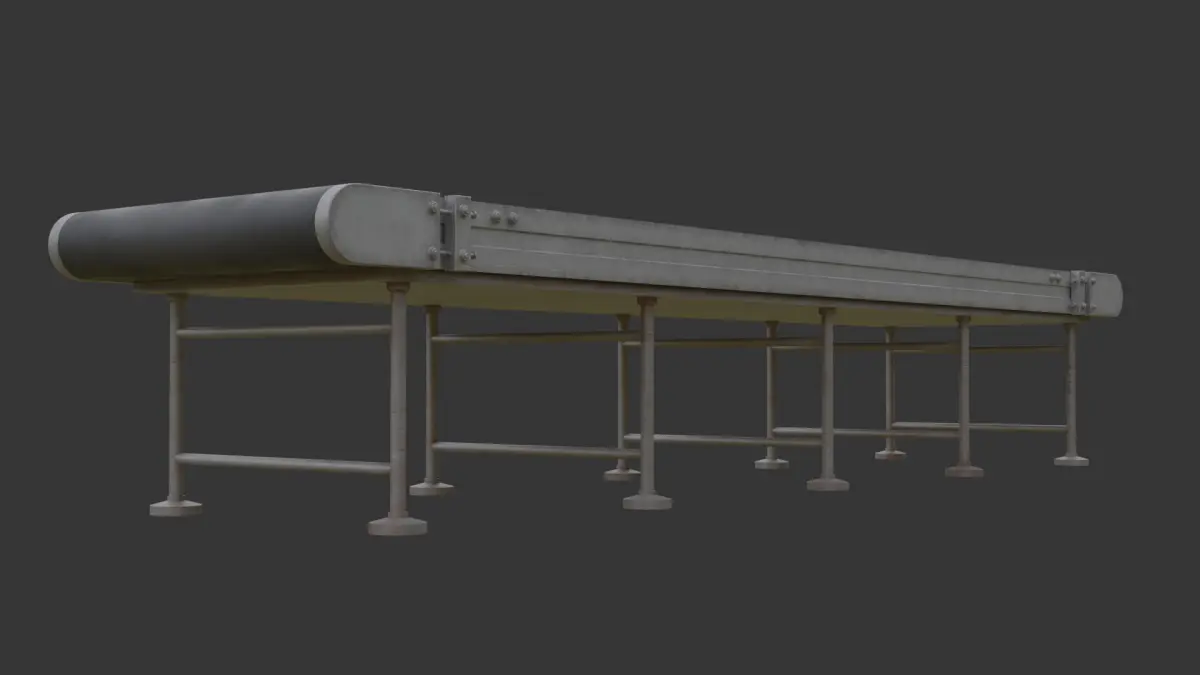 ndustrial Conveyor Belt, Modeling and texturing by Blender.
