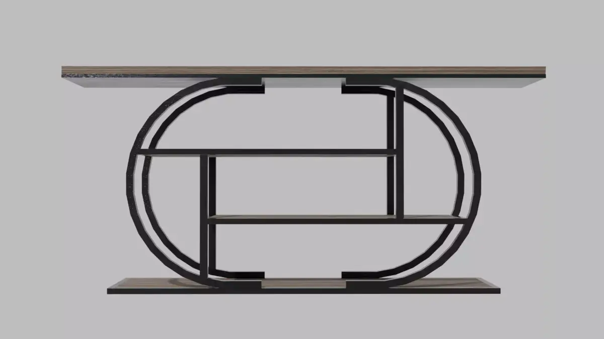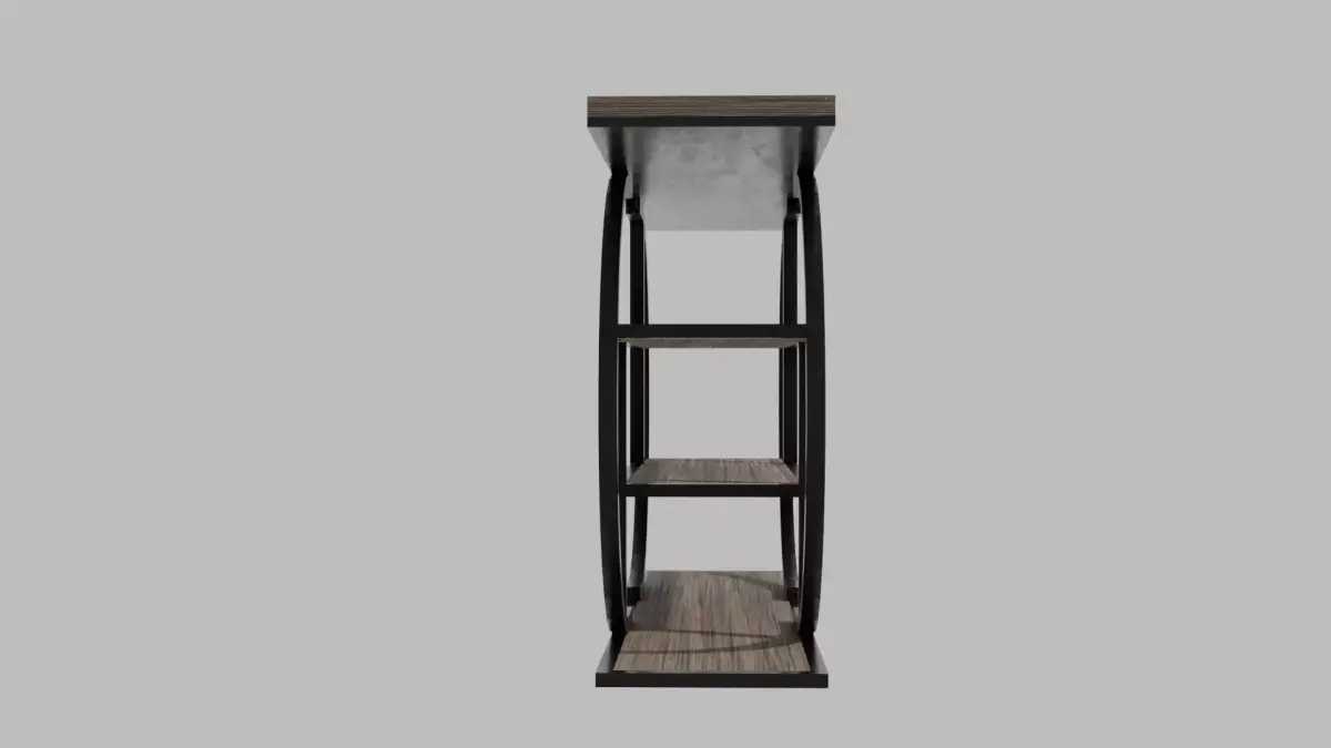 This industrial curved-brace entryway table blends rugged materials with refined design. Its sturdy metal frame features bold, curved C-shaped braces at either end, creating a distinctive industrial silhouette. The natural aged wood shelves add warmth and texture, offering a perfect contrast to the dark metal structure. Durable and stylish, this table makes a striking addition to any entryway, hallway, or loft-inspired interior.