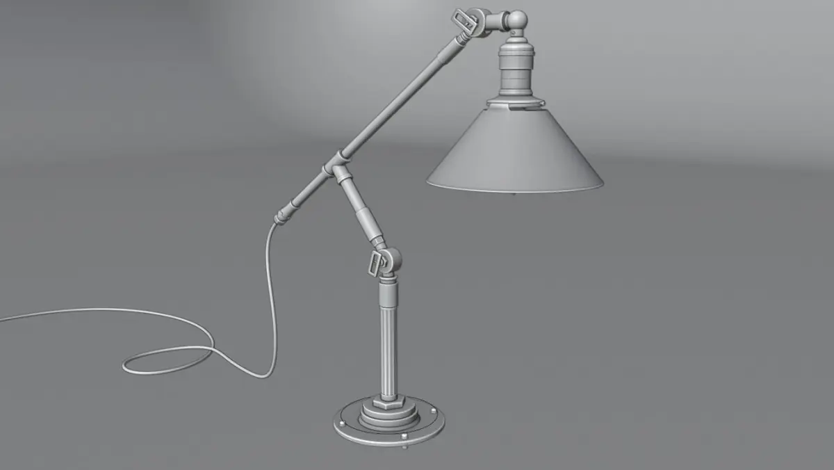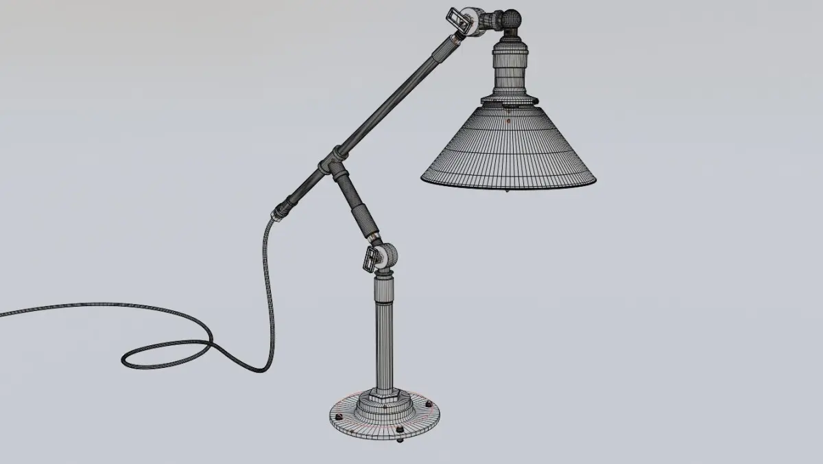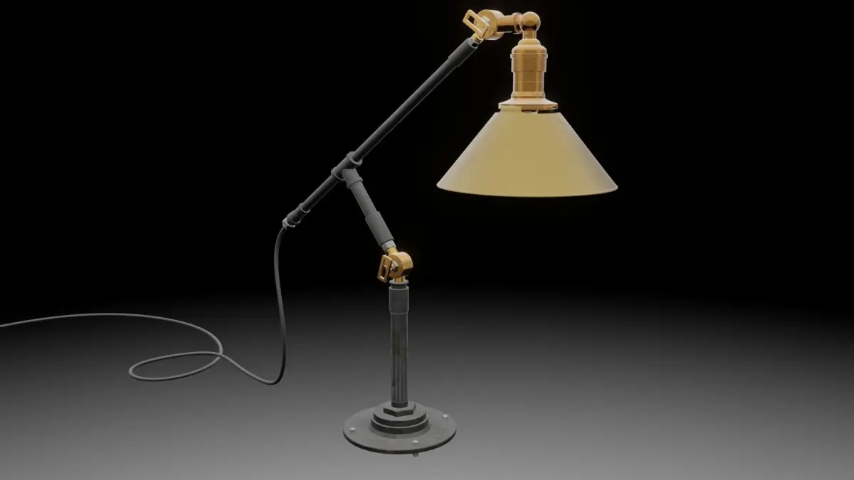 Detailed 3D model of an industrial desk lamp modeled in blender with materials and lights perfect for close-up renders