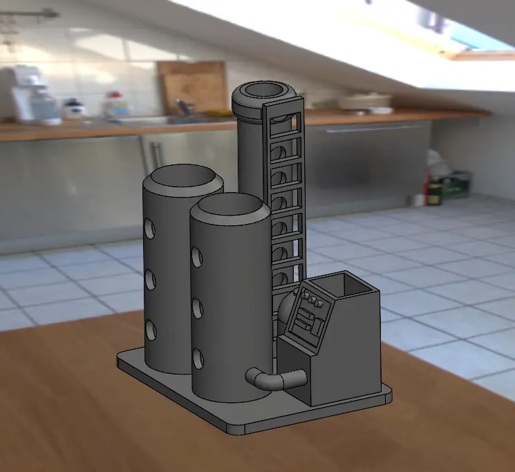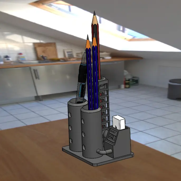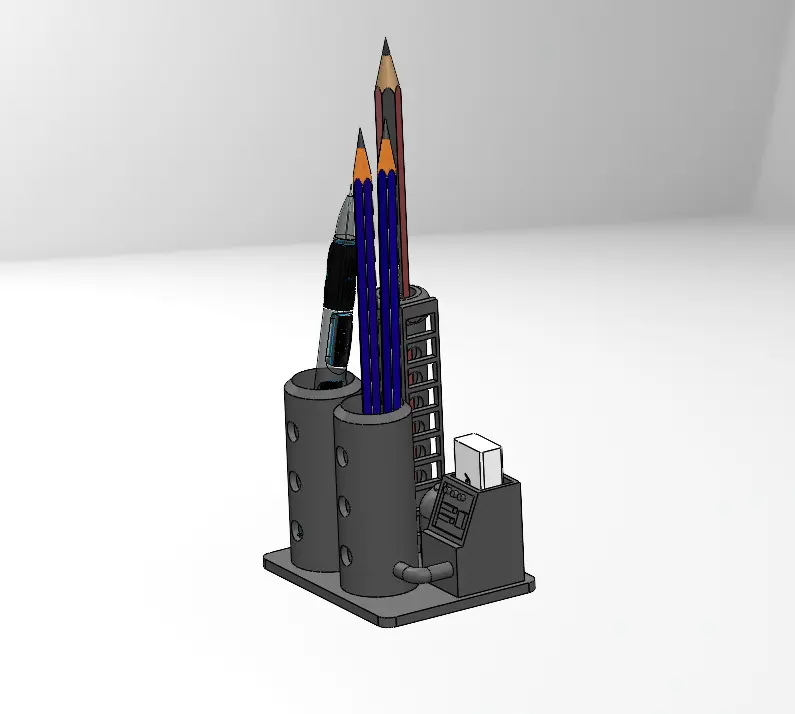 This is a unique desk organizer inspired by the design and structure of an oil refinery. Combining functionality with industrial aesthetics, this model is ideal for storing pens, pencils, markers, erasers, and small stationery items in a creative and eye-catching way.