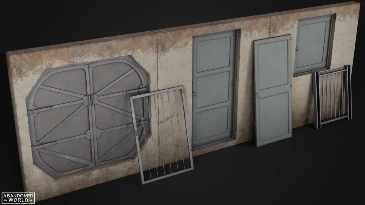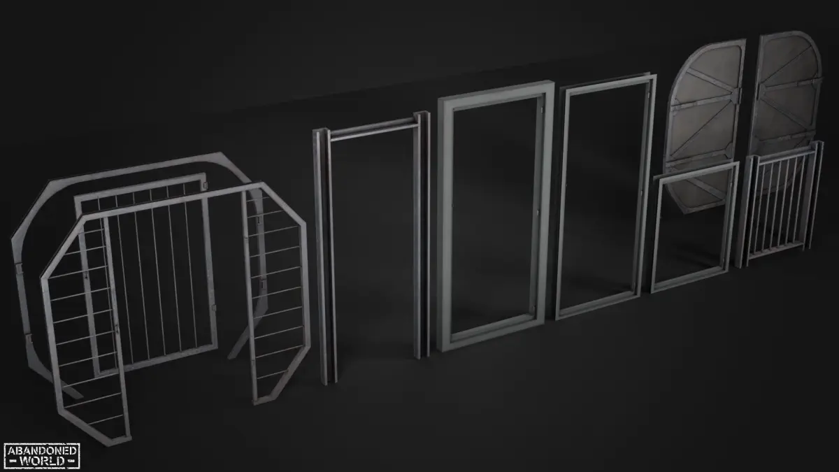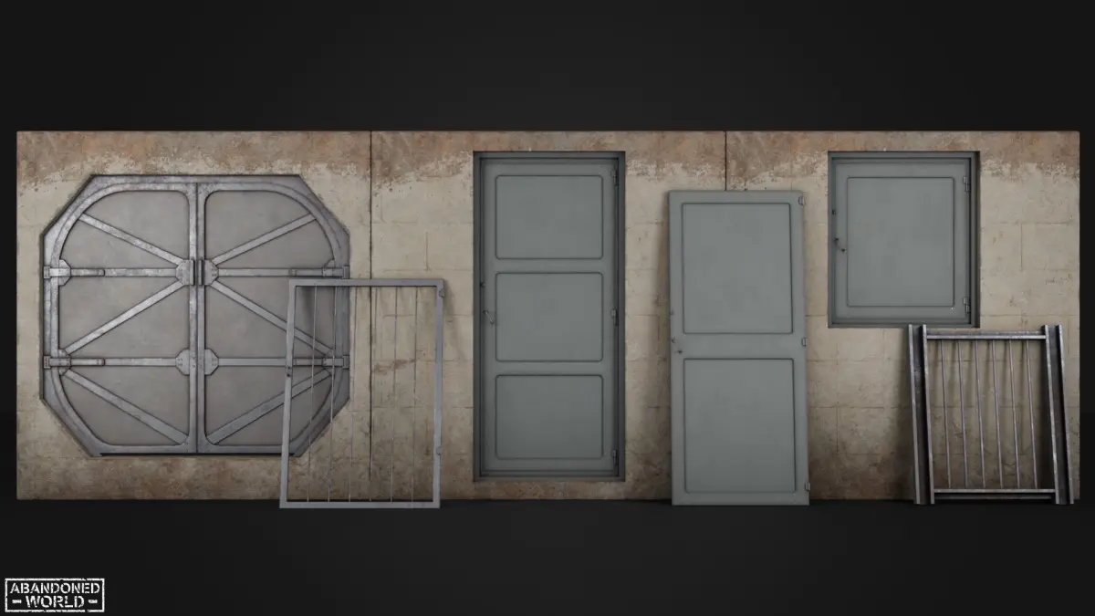 Industrial Doors Pack made in Game Ready. This set of doors is designed for use in an industrial environment. The set includes wooden doors, wooden window shutters, metal gates and a lattice for window openings. Perfect for the Unreal Engine & Unity.