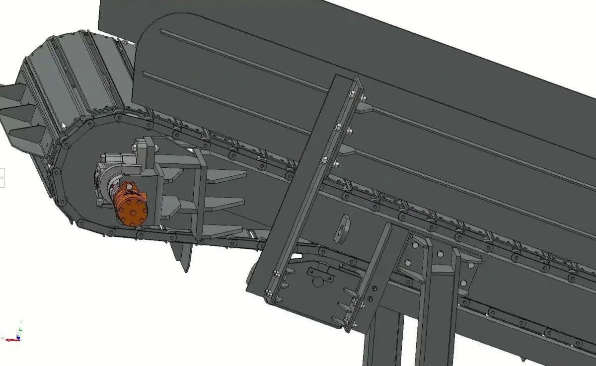 This is a detailed 3D model of a Drag Chain Conveyor, commonly used in industrial and factory settings to move bulk materials. The model includes all the main parts like the chain, housing, and motor sections. It's great for use in mechanical design, factory layouts, or industrial animations.The model is clean, well-organized, and built to real-world scale. It’s suitable for use in CAD software, simulations, or rendering projects.