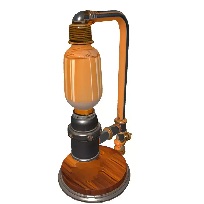 This is a meticulously crafted 3D model of an industrial-style table lamp, perfect for adding a touch of vintage elegance or steampunk charm to any digital scene. The design features a prominent Edison bulb with intricately modeled glowing filaments, housed within a clear glass enclosure. Its robust construction is detailed with weathered metallic pipes, brass accents, and a sturdy circular wooden base complemented by a distressed metal rim. This versatile model is ideal for various applications, including high-fidelity architectural visualization projects, realistic interior renderings, and detailed product showcases. It also serves as an excellent prop for game development environments, interactive augmented reality (AR) experiences, or compelling digital art compositions, enhancing any virtual space with its unique aesthetic. The model boasts clean, optimized topology, ensuring smooth deformations and reliable performance across different platforms, making it suitable for both close-up renders and broader scene integration. It is fully UV unwrapped with professionally crafted PBR textures, delivering realistic material properties for metals, wood, and glass, complete with emission maps for the glowing bulb, ensuring stunning visual fidelity. While optimized for static renderings, its clean mesh structure allows for potential optimization for real-time applications with appropriate LOD generation, making it adaptable for games and AR/VR. Supported file formats include GLB, OBJ, STL, ABC, DAE, FBX, USD, and PLY, ensuring broad compatibility with major 3D software and rendering engines, allowing for seamless integration into your workflow.