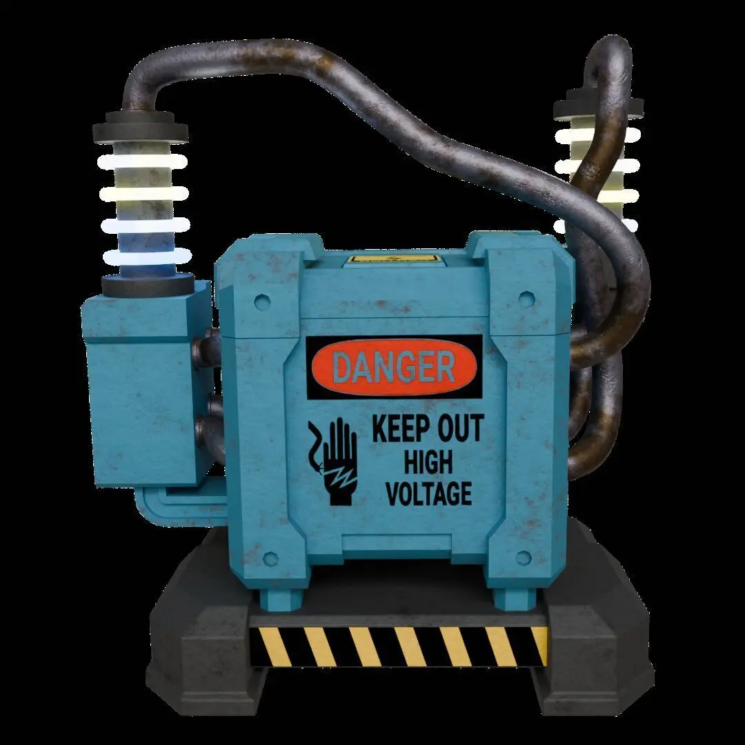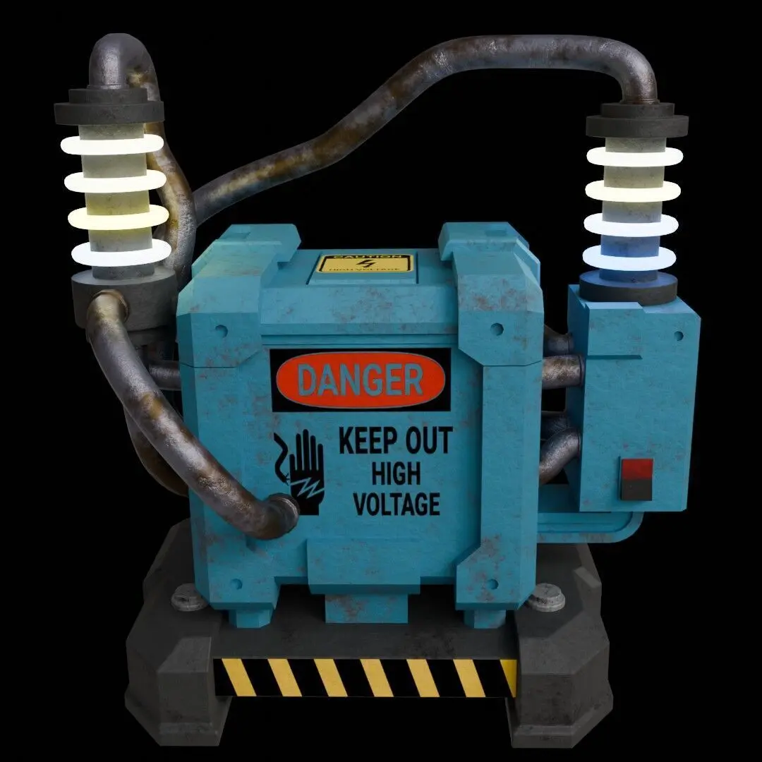 This is a high-quality industrial-style electric transformer 3D model, use in game environments, animations, and cinematic renders. The model features a robust and weathered design with realistic cables, glowing insulators, and warning decals.The asset includes two color texture variations:One with warning labels and stickers (e.g., DANGER, High Voltage, etc.)One clean version without decals – ideal for customized or neutral scenes.The pack also includes two levels of mesh detail: Model 1 (High Poly)Vertices (V): 13,421Edges (E): 26,538Faces (F): 13,132Use for close-up renders or high-end cinematics. Model 2 (Low Poly)Vertices (V): 3,926Edges (E): 7,681Faces (F): 3,770For game engines or real-time applications.PBR Texture Sets (BaseColor, Roughness, Metalness, Normal)4K resolutionUV mappingNon-overlapping UVs