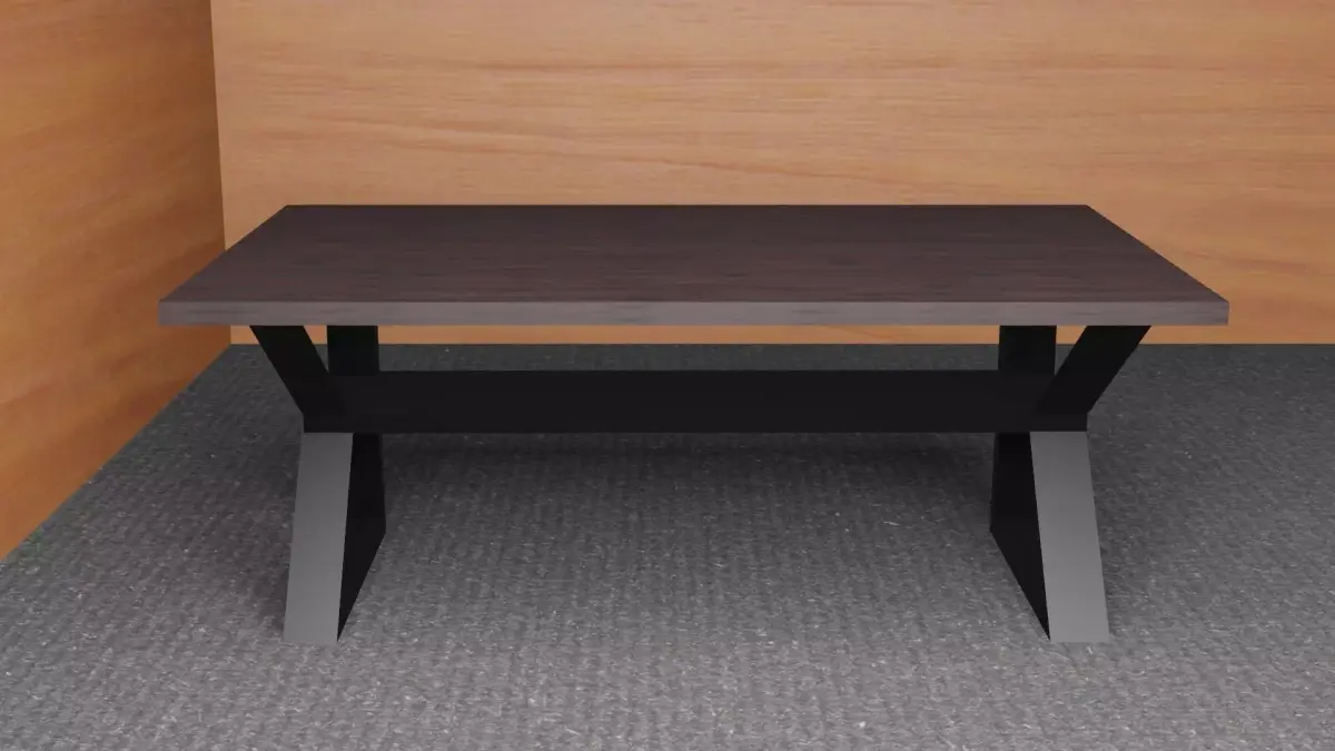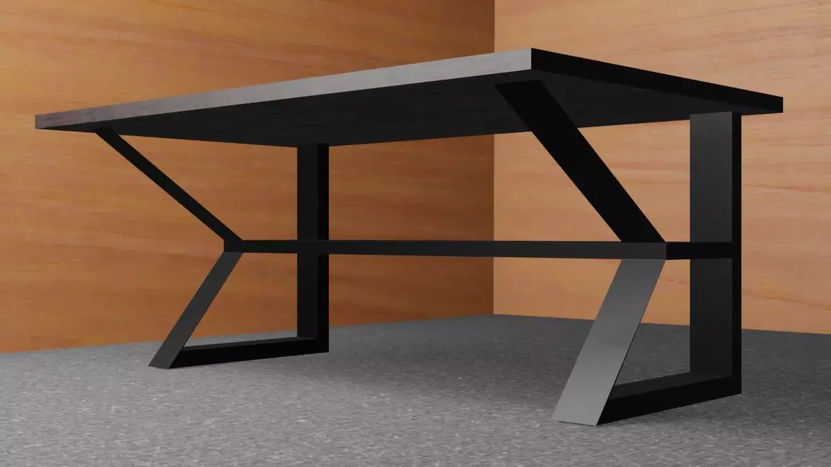 Elevate your workspace or living area with the Industrial Elegance Worktable – a sleek fusion of modern design and industrial strength. This 3D model features a rich, dark wooden tabletop that brings warmth and sophistication, perfectly contrasted by bold, angular metal legs in a matte black and brushed steel finish. The unique geometric support structure not only ensures stability but also adds a contemporary edge to the design.