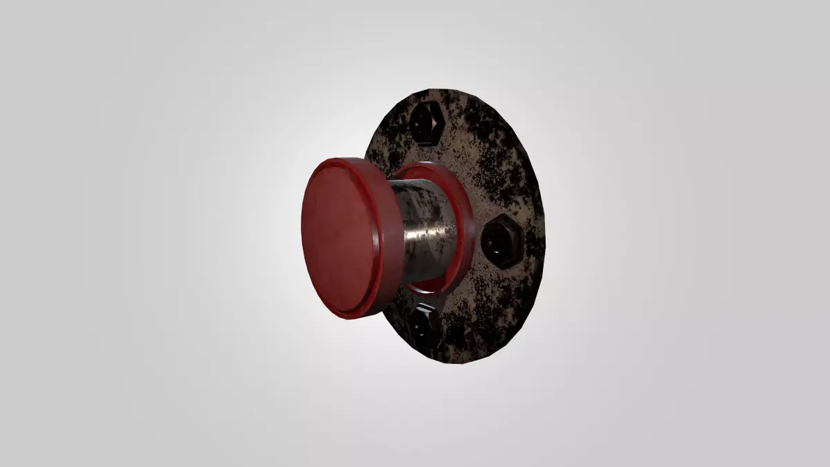 A highly detailed industrial emergency button asset designed for professional use in games, real-time applications, and 3D renders. This weathered control panel button features authentic industrial design elements including a large circular activation surface, mounting bolts, and a realistic aged metal finish.