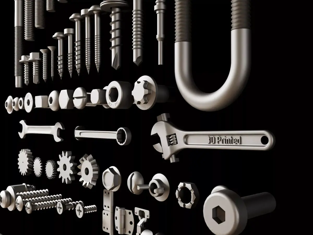 Professional high-quality 3D Mega Collection of Industrial Fasteners Hardware and Mechanical Components meticulously crafted for premium engineering visualization mechanical assembly simulation and industrial product design projects. This massive asset pack features over 100 distinct high-fidelity components including various metric bolts (hex flange socket-head) self-drilling screws U-bolts and nuts industrial gears and sprockets mechanical wrenches and essential furniture hardware like heavy-duty hinges with realistic metallic PBR materials.