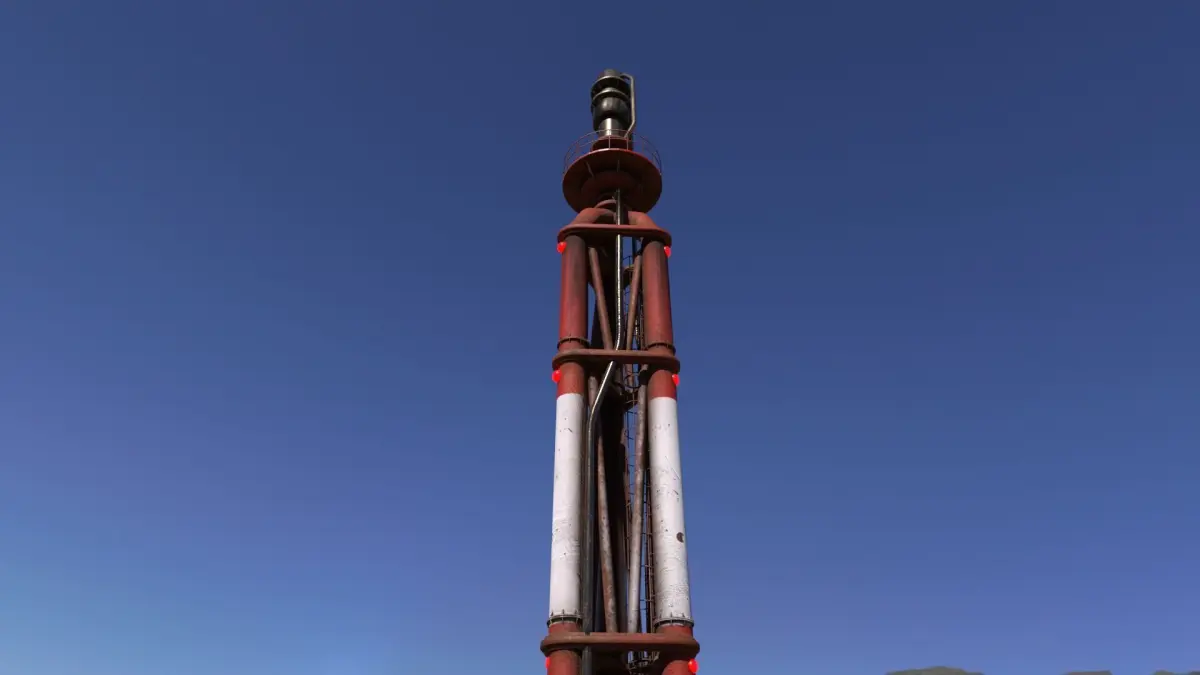 - Accurate Design: Based on real-world reference of hydrocarbon processing plant flare stacks; includes structural braces, maintenance platforms, and realistic emission tip.