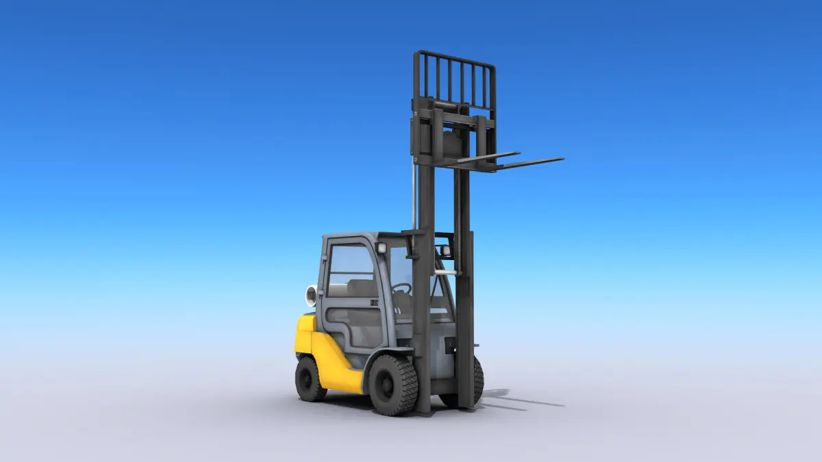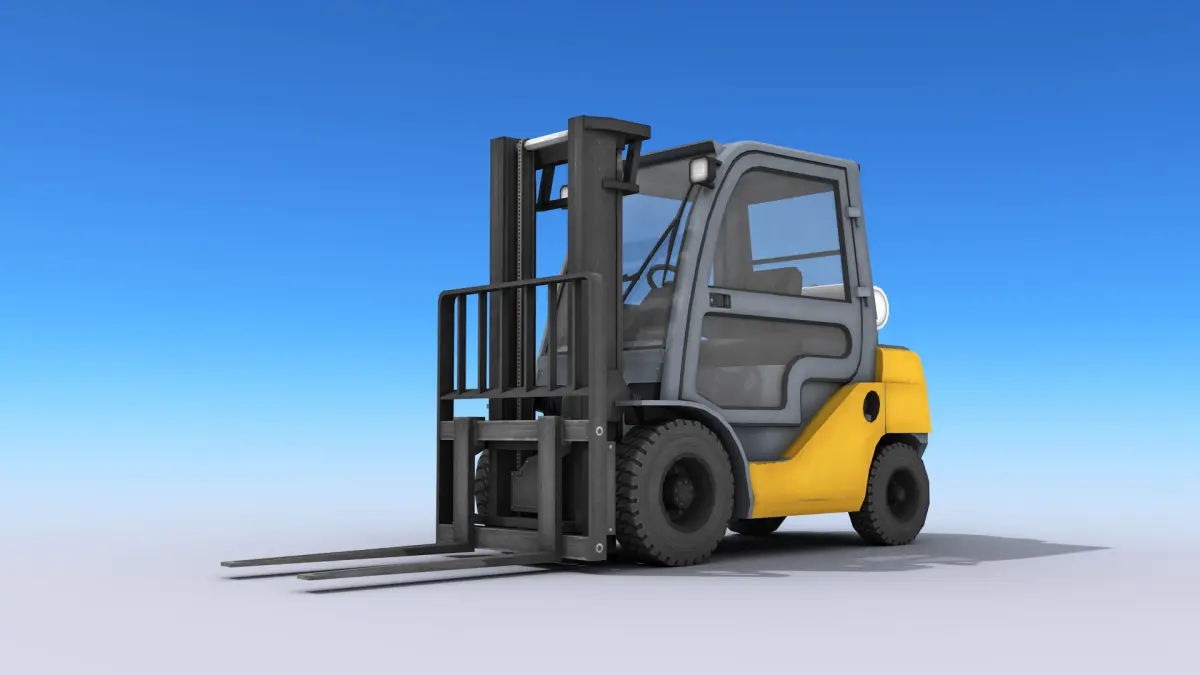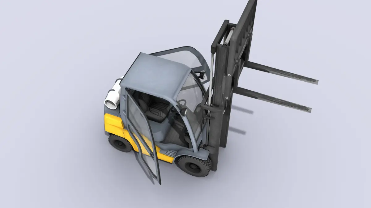 High-quality low-poly 3D model of Forklift. Interior parts are also modeled but with less detail. The doors can be opened.