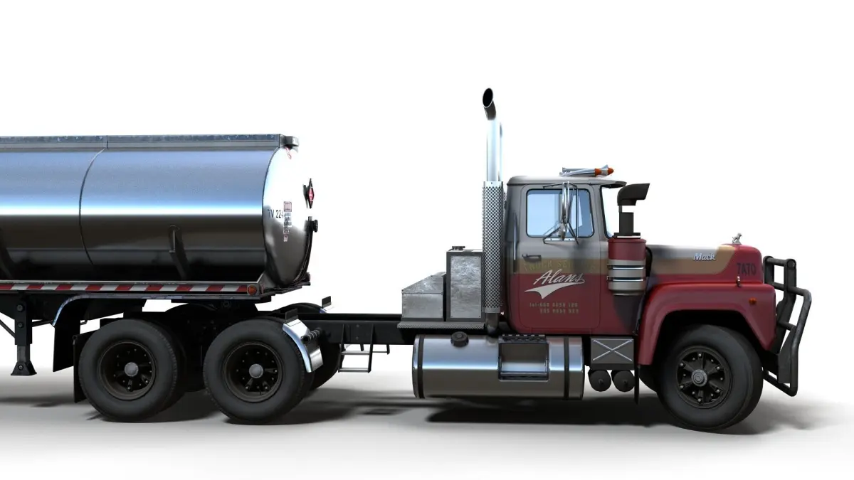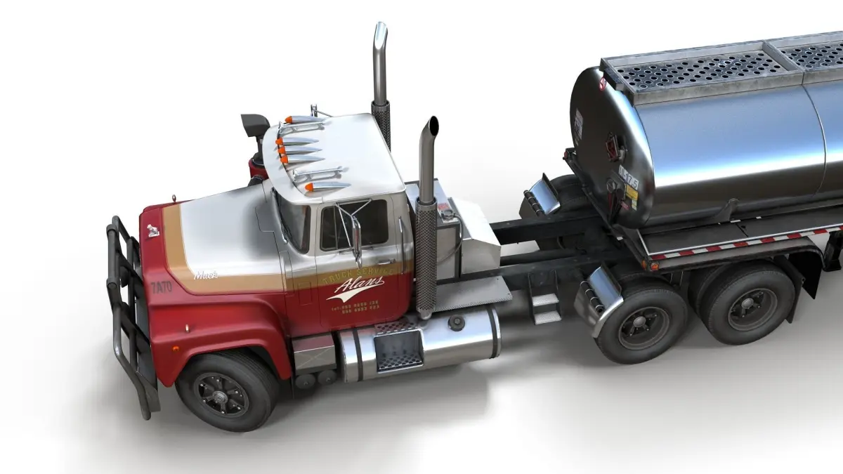Gameraedy MackR fuel trailer model. Low poly interior. PBR maps for wheels(2048x2048).. Additional bodypaint schemes(2048x2048). Model ready for real-time apps, games, virtual reality and augmented reality.Trailer - 27834 tris/16580 vertsTruck - 63783 tris/37212 verts