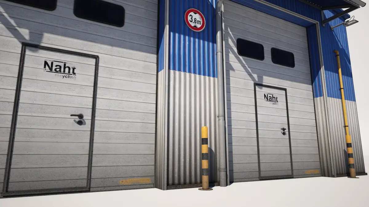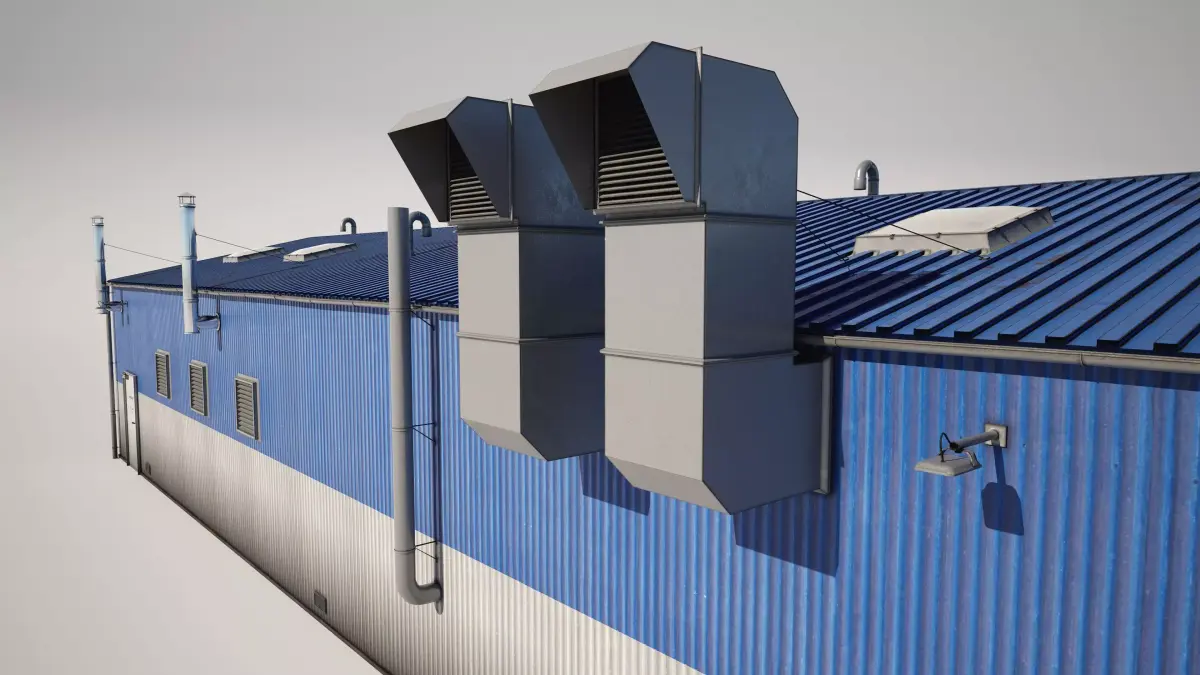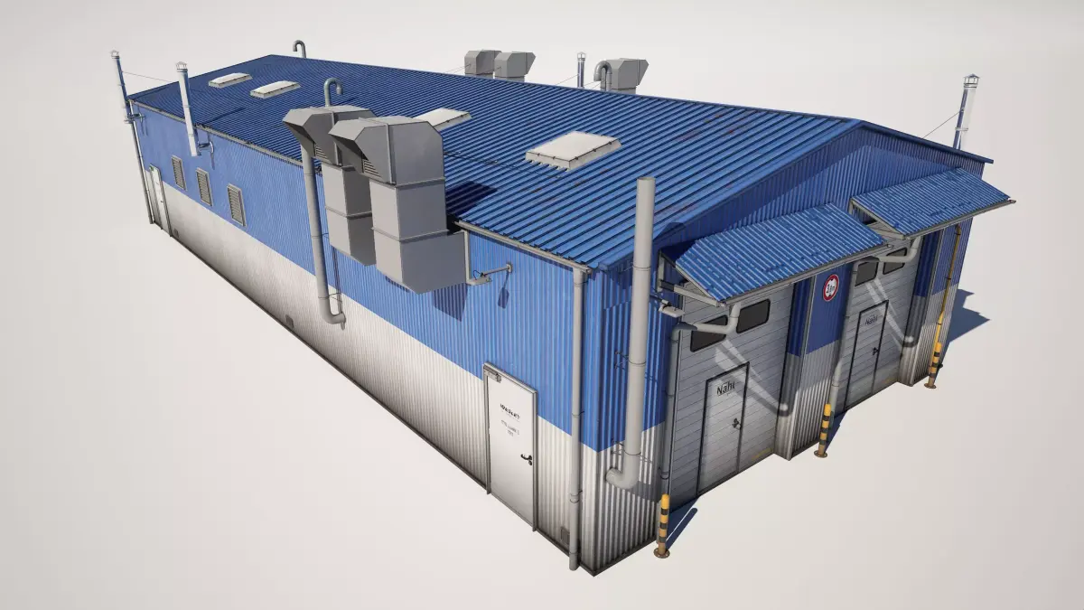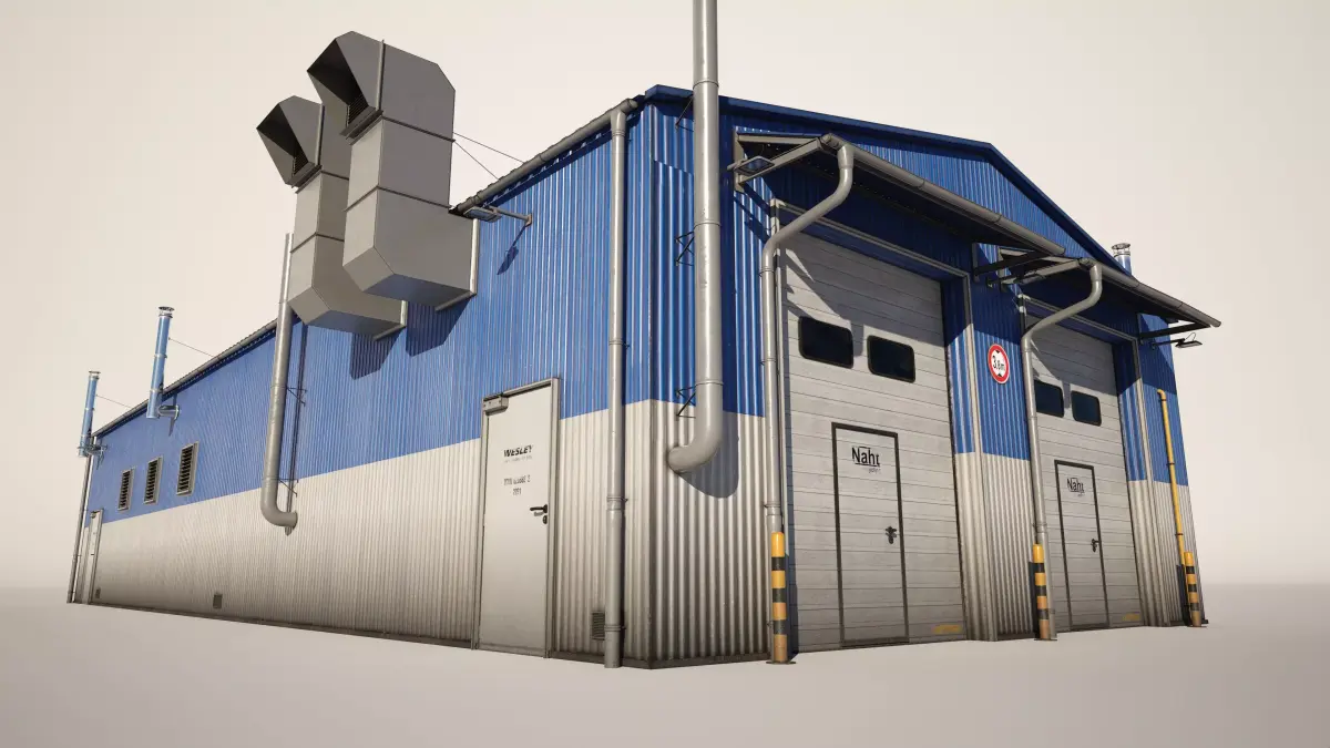 Detailed model of a industrial workshop building garage