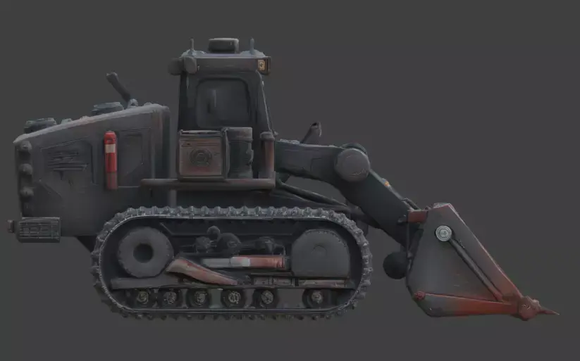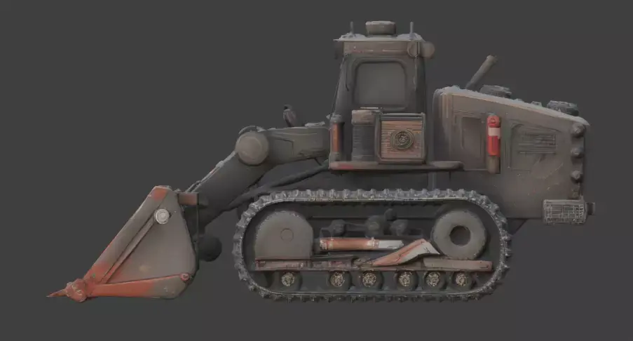 Tagsarmored loader, industrial vehicle, heavy machinery, 3d model, game asset, weathered metal, spiked bucket, rugged design, track loader, realistic machine, custom engineering, cinematic prop, 3d prop, gothic industrial, wasteland, construction equipment, dark fantasy, tactical vehicle, mechanical prop, high poly detail