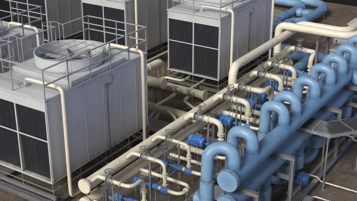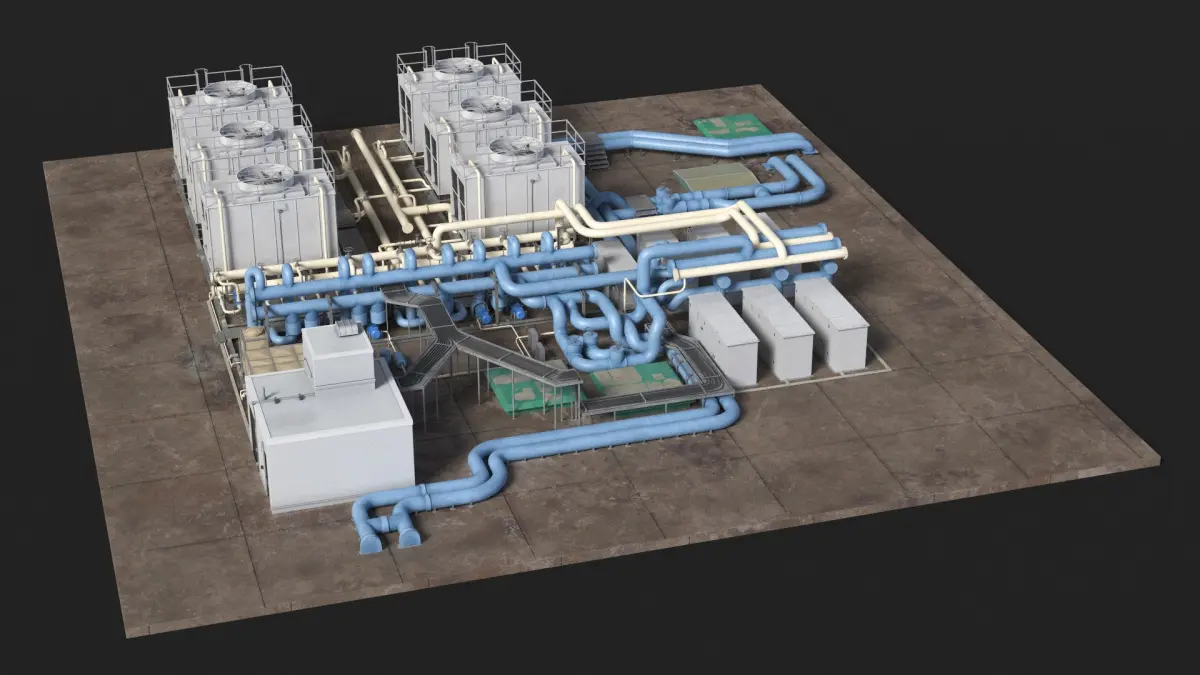 For industrial HVAC systems, building engineering, architectural visualization, mechanical engineering projects, energy management, cooling infrastructure design, industrial facility planning, educational tools, and technology demonstrations.