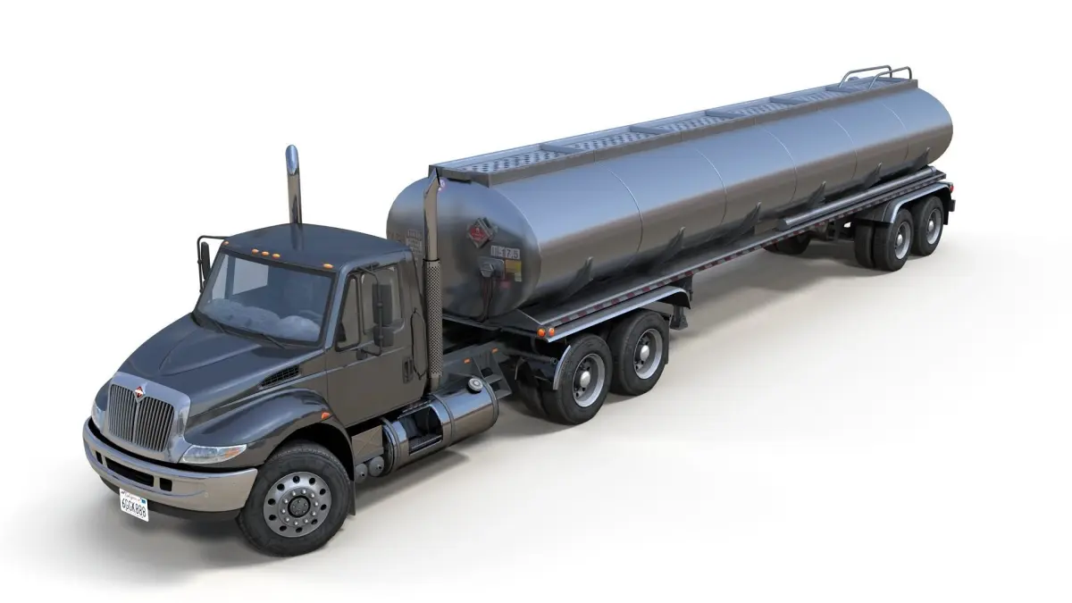 High accuracy industrial International Durastar fuel trailer gameready model.