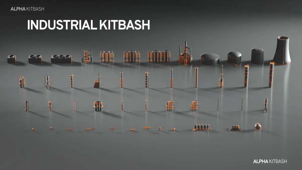 an essential collection of 3D models specifically designed to assist concept artists, environment artists, and 3D artists in creating industrial-themed environments. This kitbash offers a wide range of industrial machinery and equipments including Modular pipelines, valves, platforms, and chimney. With this versatile kitbash, artists can effortlessly construct realistic factory settings and infuse their projects with the gritty atmosphere of heavy industry.
