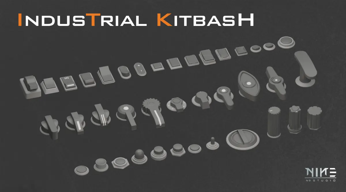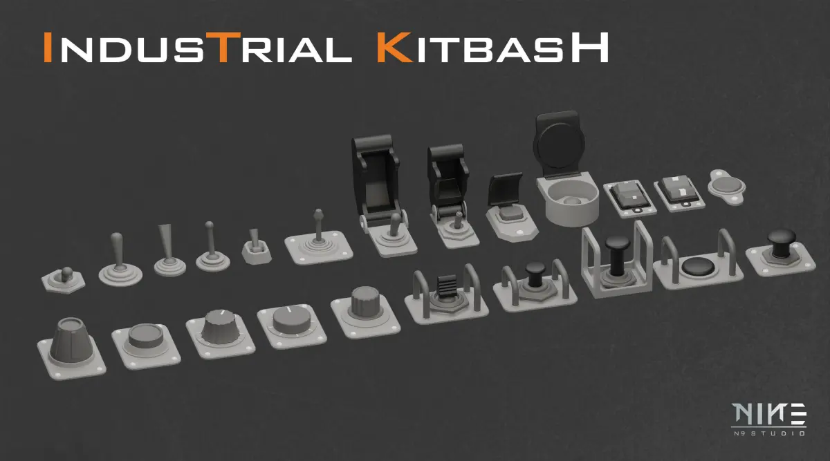 There are more than 170 different base meshes of Control panel details Kitbash including Joysticks, indicators, Buttons, Switches, Ports, and more for you so that you can easily use them in your projects.