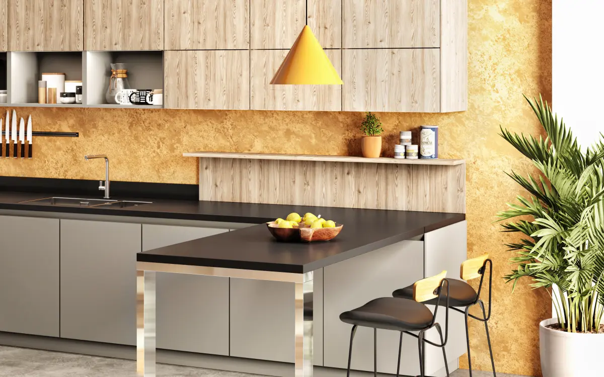 Three camera views have been set up to showcase different angles of the kitchen.