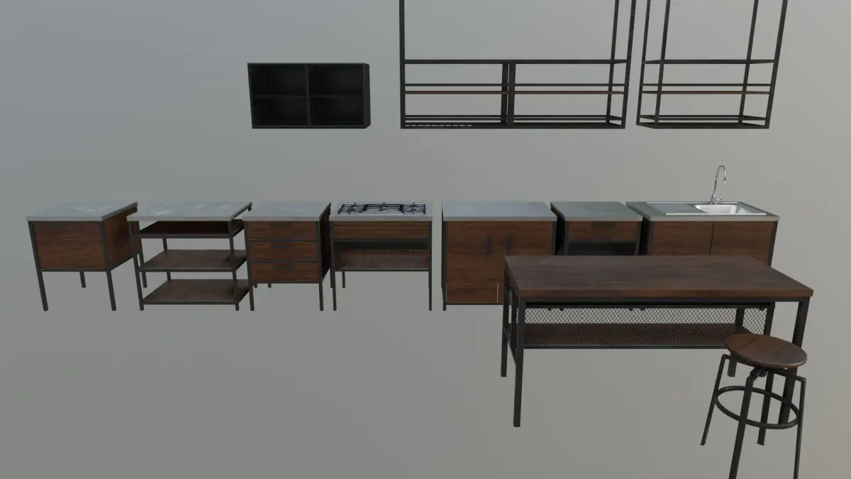 The only geometry heavy elements are the sink and the stove, but I left them like that to preserve the details.