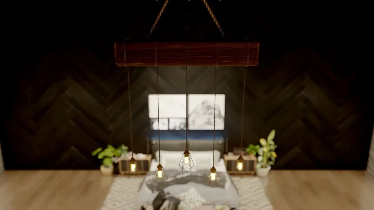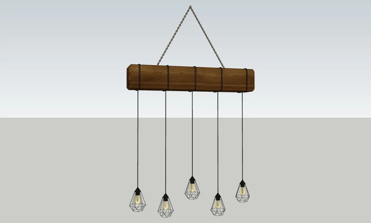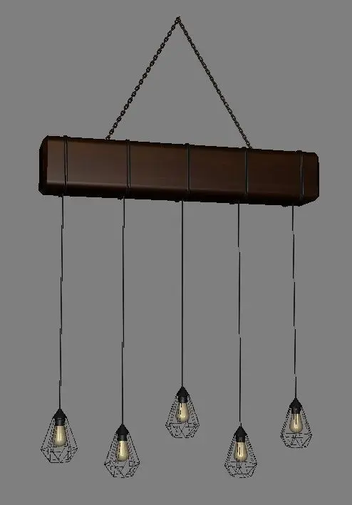 Industrial Hanging Edisson Lamp indoor with wooden beams log and chain low poly