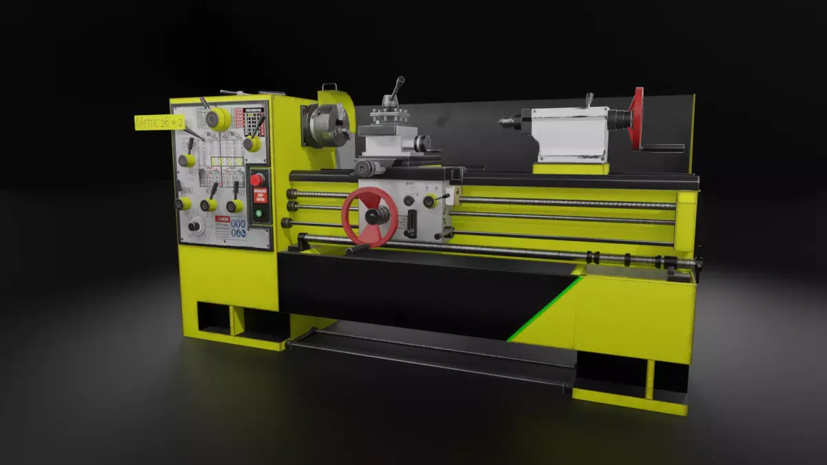 It includes detailed components such as the headstock, carriage, tailstock, control panel with labels, emergency stop button, hand wheels and guideways.With its low poly mesh and PBR textures, it is optimized for real-time applications like games and simulations, while keeping an industrial, believable look. Fully compatible with modern game engines such as Unity and Unreal Engine.