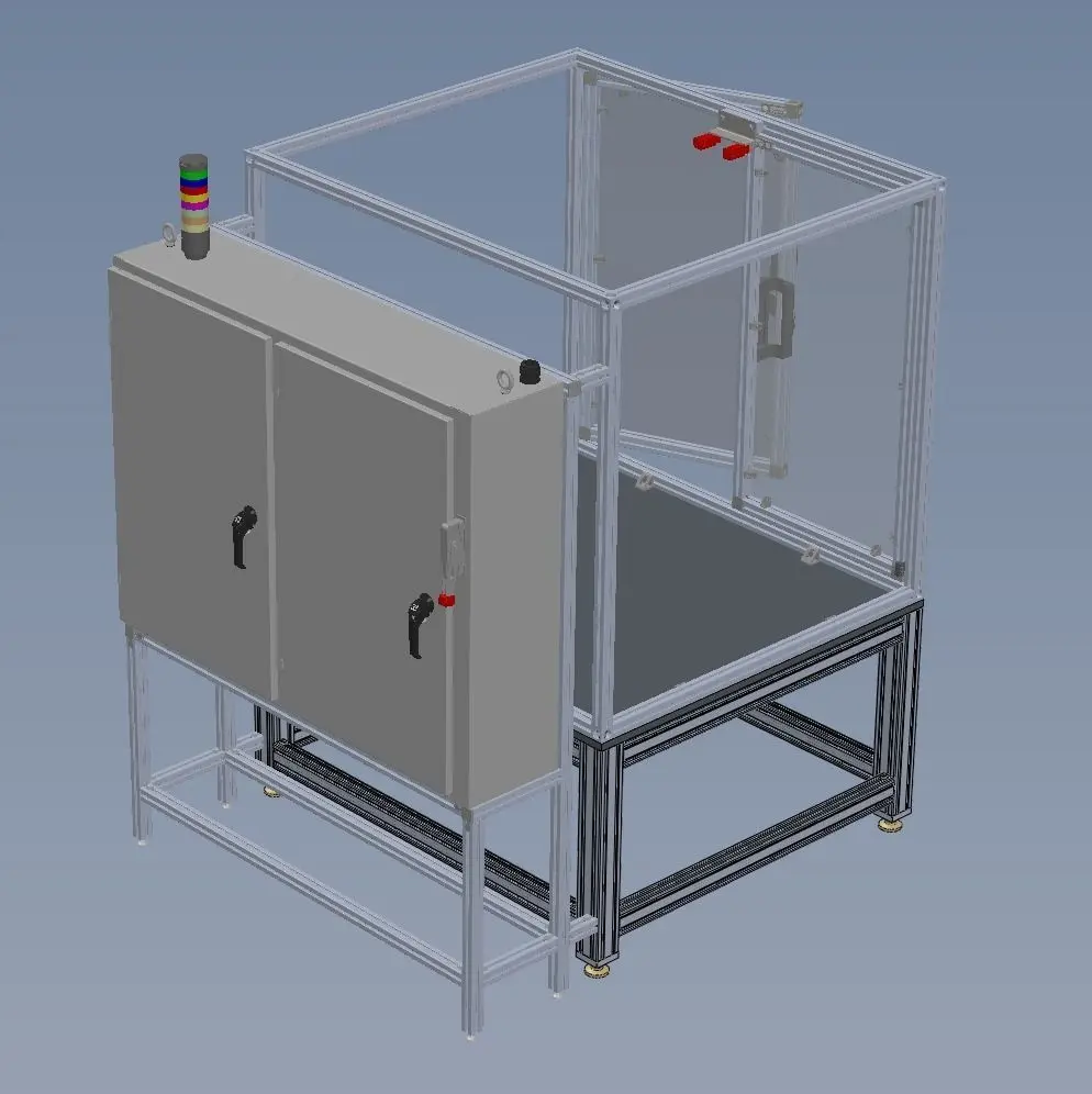 The project can save you or your designer up to two weeks of work. For example, a designer is hard pressed to identify a sound method for machine framing, guarding, power cabinets, disconnects, wire entry methods and strain reliefs, safety light trees and interlocks, how to design doors and attach panels, where to buy these items and assemble a detail bill of material for budgeting and detail cost tracking.