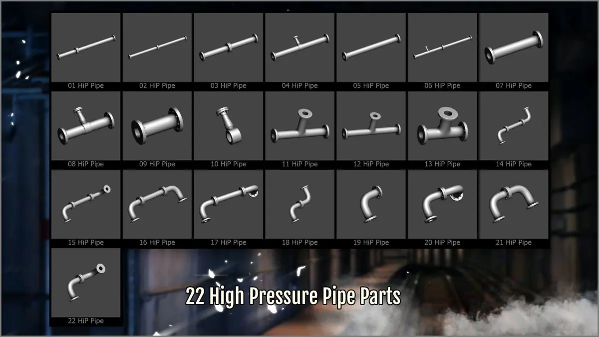 You can use them for building space ship engine rooms, industrial sceneries, dystopian future sci-fi artworks, machines and robots, vehicles, city gutters, urban scenes, plumbery, construction scenes, bathrooms, boiler rooms, factories, gas pipes, and much more.